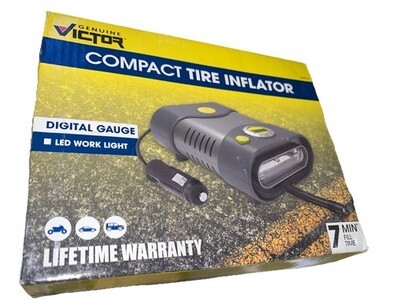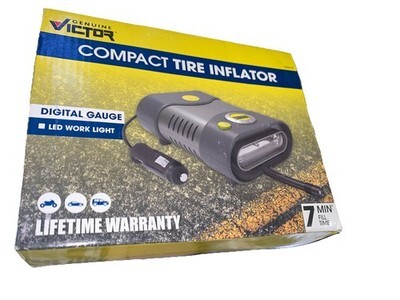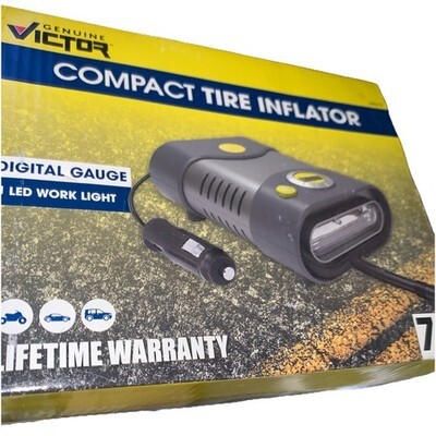The Victor Compact 12V Car Tire Inflator Compressor with LED Work Light is a portable and convenient tool for inflating tires on the go. With a corded electric power source and LED work light, this tire inflator from Victor Products is perfect for quick and easy inflation. The compact design makes it easy to store in your car or tool shed, ensuring you always have it on hand when you need it. Trust the Victor 22-5-16020-8 model for reliable and efficient tire inflation whenever you need it.