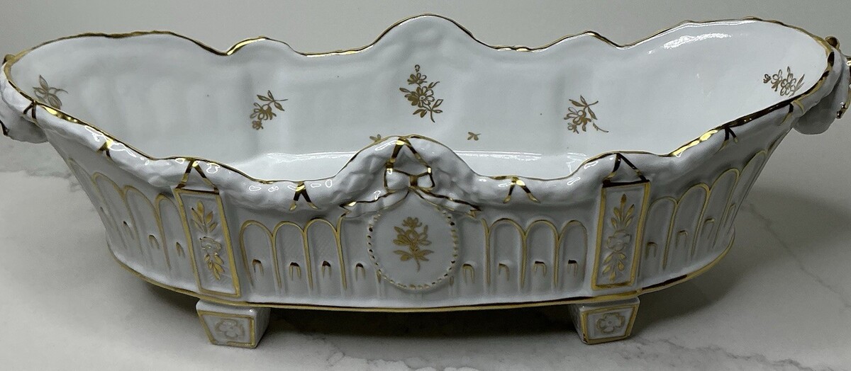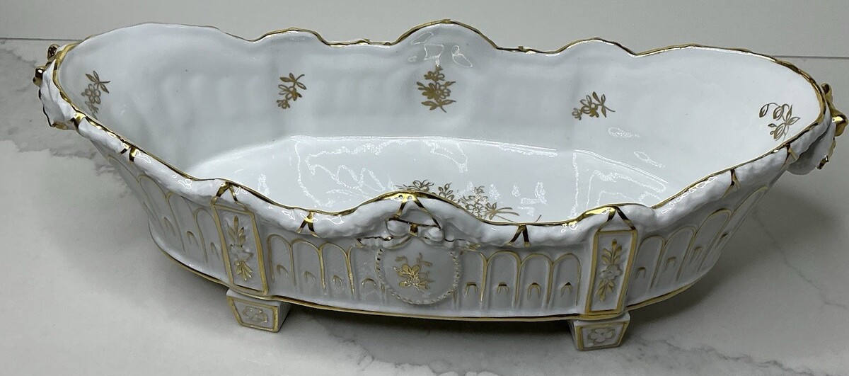 Antique Vintage Von Schierholz Console Bowl Germany Floral w Gold