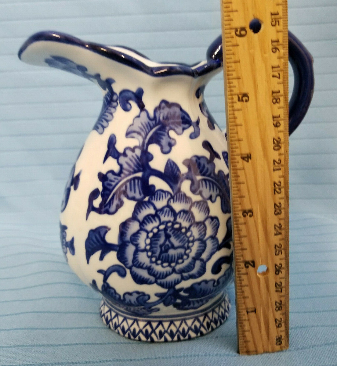 Blue White Ceramic Creamer Pitcher 6"Bright Design