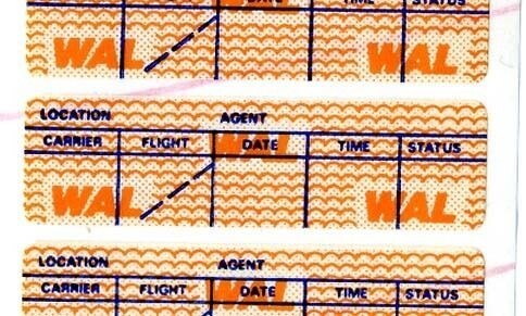 Western Airlines Strip of 10 Ticket Revalidation Stickers 1960's