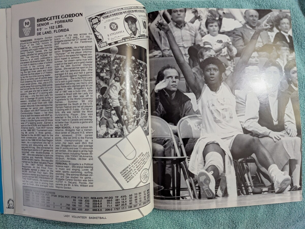1988-89 Tennessee Lady Vols Basketball Media Guide Bridgette Gordon