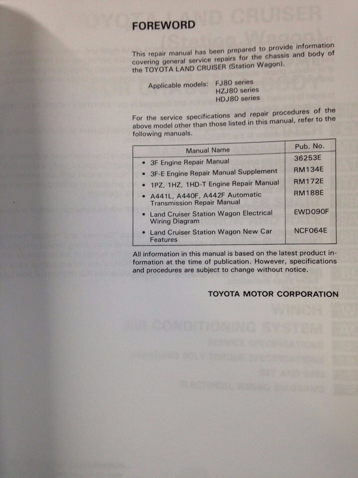 SECONDA STAMPA 1990 TOYOTA LAND CRUISER FJ80 HZJ80 HDJ80 Manuale di servizio carrozzeria telaio NUOVO