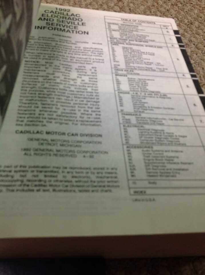 Plein d'informations et d'illustrations, instructions etape par etape, assemblage / demontage, illustrations / diagrammes exploses / depannage, grand manuel a avoir lors de la possession / de l'entretien d'un Eldorado / Seville et sera une grande aide pour garder votre Eldorado / Seville sur la route. Ces manuels vous feront economiser de l'argent en reparation / service. Un must si vous possedez l'un de ces vehicules.