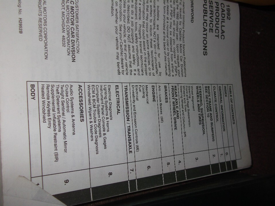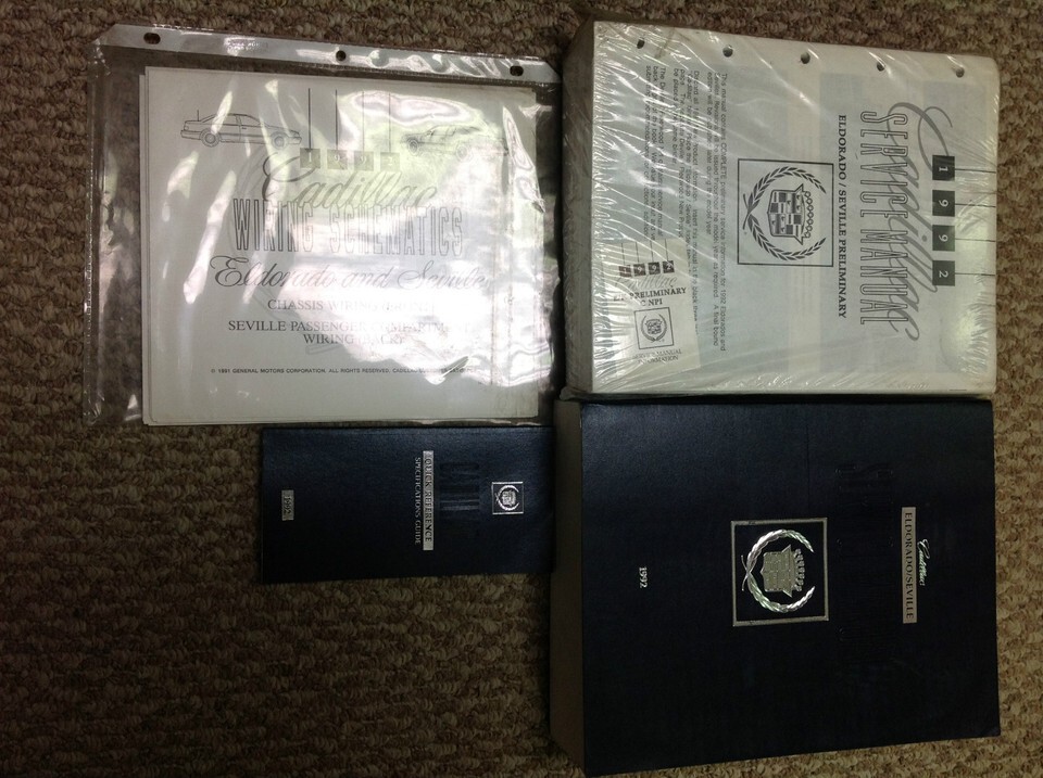 1992 Cadillac Eldorado Seville Factory Service Manuel, Manuel du guide des specifications de reference rapide, Manuel d'information preliminaire et manuel de schemas de cablage.