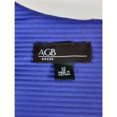 AGB Cap Sleeve A-Line Dress Layered Seersucker Striped Blue Women's Size 12