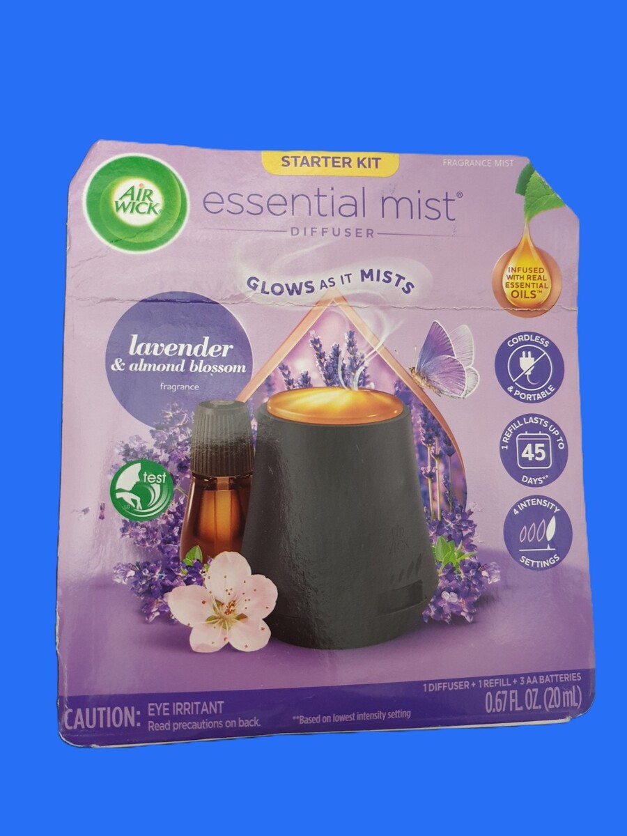 Air Wick Essential Mist Diffuser Starter Kit Lavender Almond Blossom with Refill.