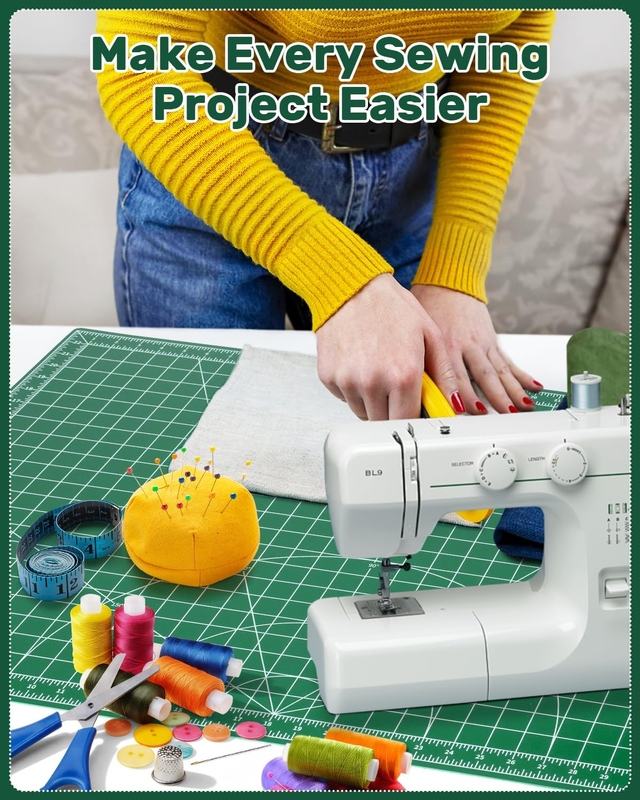 Precise Measurements for Easy Cutting: Achieve accurate cuts every time with this double-sided self-healing cutting mat. Whether working on a sewing table or craft table, your fabric cutter glides smoothly, reducing errors and material waste. Durable Self-Healing Surface: The self-healing material recovers automatically after each cut, keeping the mat flat and looking new. Even with frequent use, this small cutting board maintains a clean and reliable surface for all your sewing products. Protects Tools and Surfaces: This mat helps preserve the sharpness of your blades while preventing scratches or dents on your table. Whether using a sewing ruler or fabric cutter, it provides a stable surface for effortless cutting. Versatile and Easy to Store: Perfect for a variety of crafting tasks including sewing, fabric cutting, and other DIY projects. Its compact design makes it easy to store, and it can be quickly set up on your craft table whenever needed.