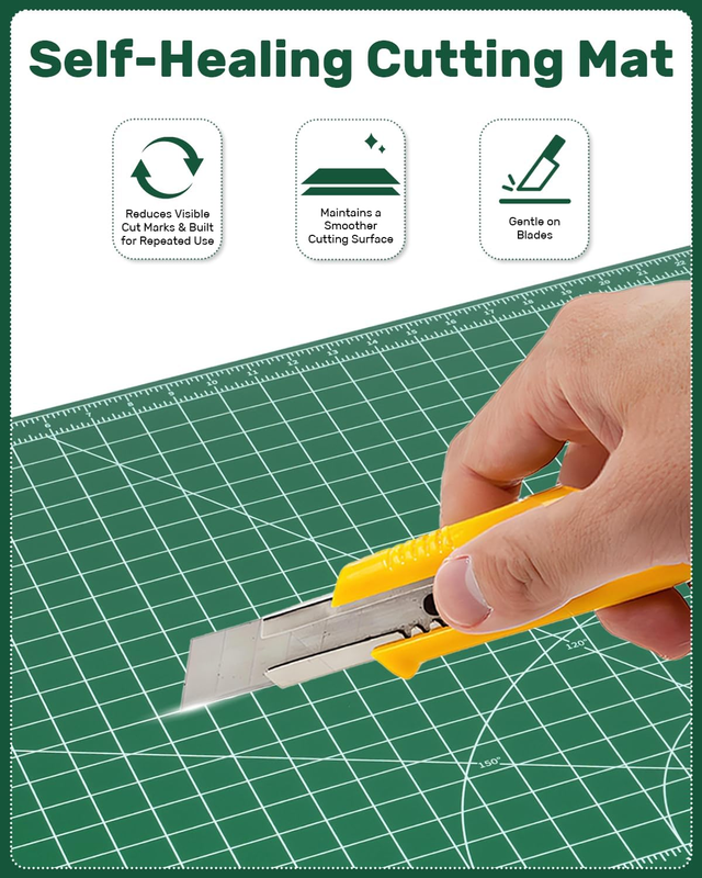 High-Quality Self-Healing Layer: Self-healing surface absorbs light cuts to stay smooth over time, compatible with rotary cutter for fabric, straight blades, and other crafting supplies.