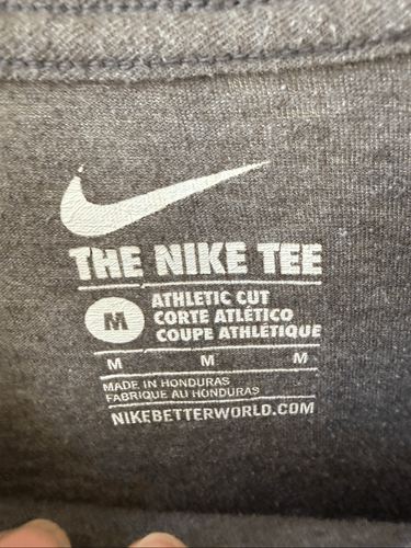 Nike men?s short sleeve T-shirt in gray with neon, orange, yellow and green dare to air on the front with a neon orange Nike swoosh at the left shoulder. Laying flat measures 27? shoulder to hem and 9? armpit to armpit. Tag size large. My son has outgrown this size and I have a lot listed in the size, so make sure to check it out! Bundling is a great way to save on shipping. Let me know if you have any questions.