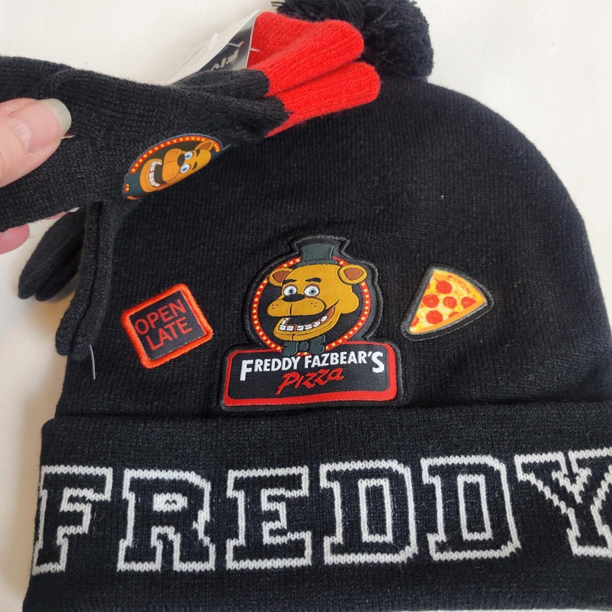 New NWT Children's Five Nights At Freddy's Pom Beanie Hat and Gloves Set Blackl