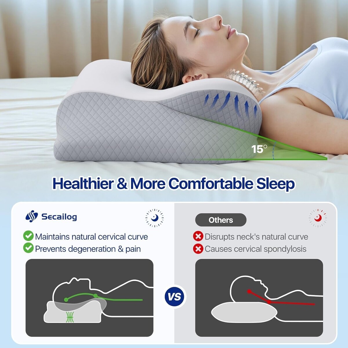 Elevate your sleep experience with our 2-in-1 Orthopedic Cervical Pillow, designed for both back and side sleepers. Its unique dual-height design ensures that every individual achieves their ideal comfort level, reducing neck pain while improving sleep quality. Experience the luxurious cooling sensation of our milk-silk pillowcase combined with the support of memory foam, and say goodbye to restless nights.