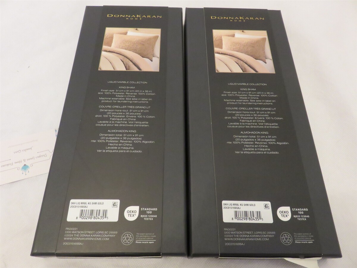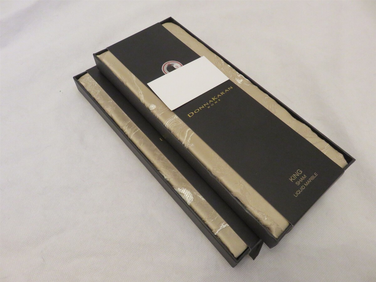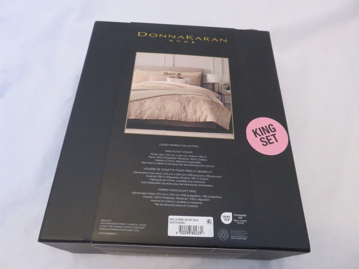 Donna Karan Liquid Marble 3P King Duvet Cover Shams Set Gold $1395