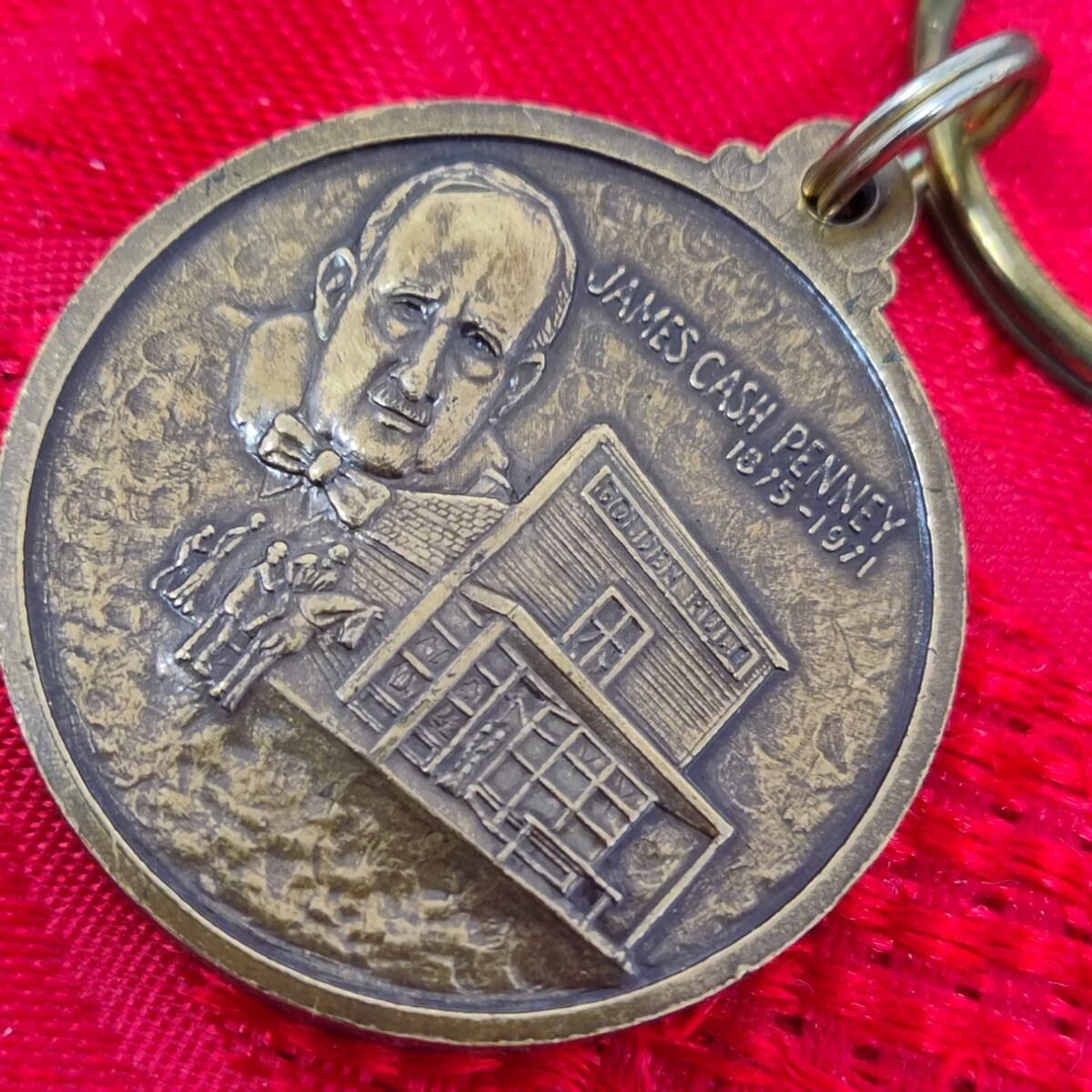 Vintage James Cash Penney JC Penney Golden Rule Award Brass Keychain Key Ring