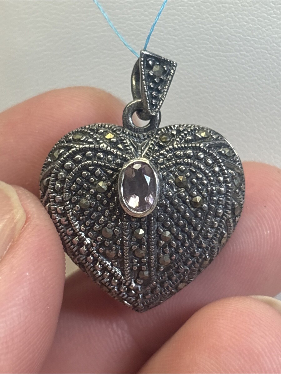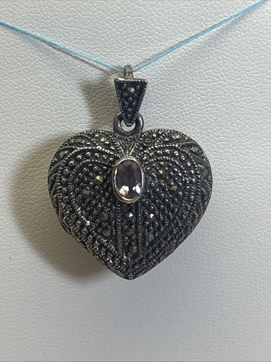 FAS 925 Sterling Silver Heart Locket With Stone. Lock it does need to be cleaned. Can?t tell if stone is purple or pink color. Lock it weighs 12.31 grams. This is for a locket only and does not include a chain.