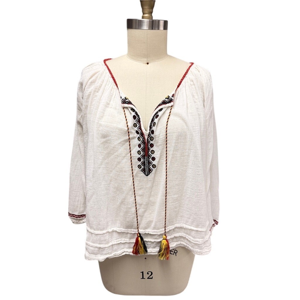 Ralph Lauren Denim & Supply Embroidered Peasant Boho Top L Tassels Festival