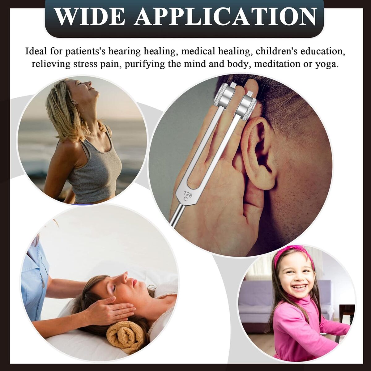 ??Wide Compatibility?128Hz, 256Hz and 512Hz Tuning Fork Set for medical healing. Ideal for patients's hearing healing, medical healing, children's education, relieving stress pain, purifying the mind and body, and also very suitable for meditation or yoga.