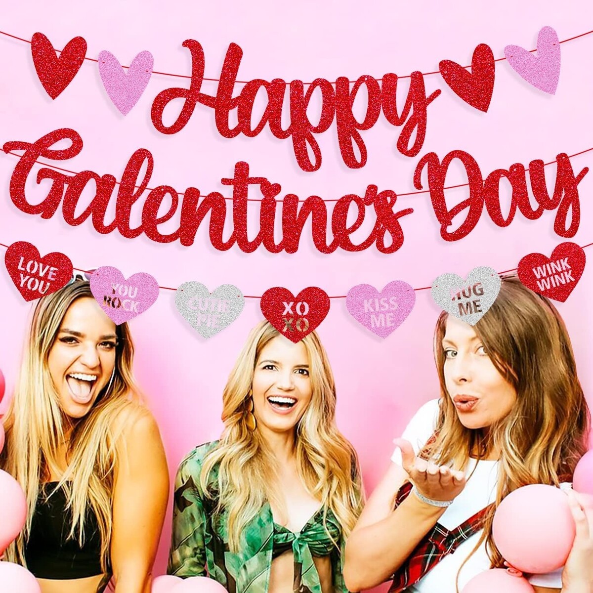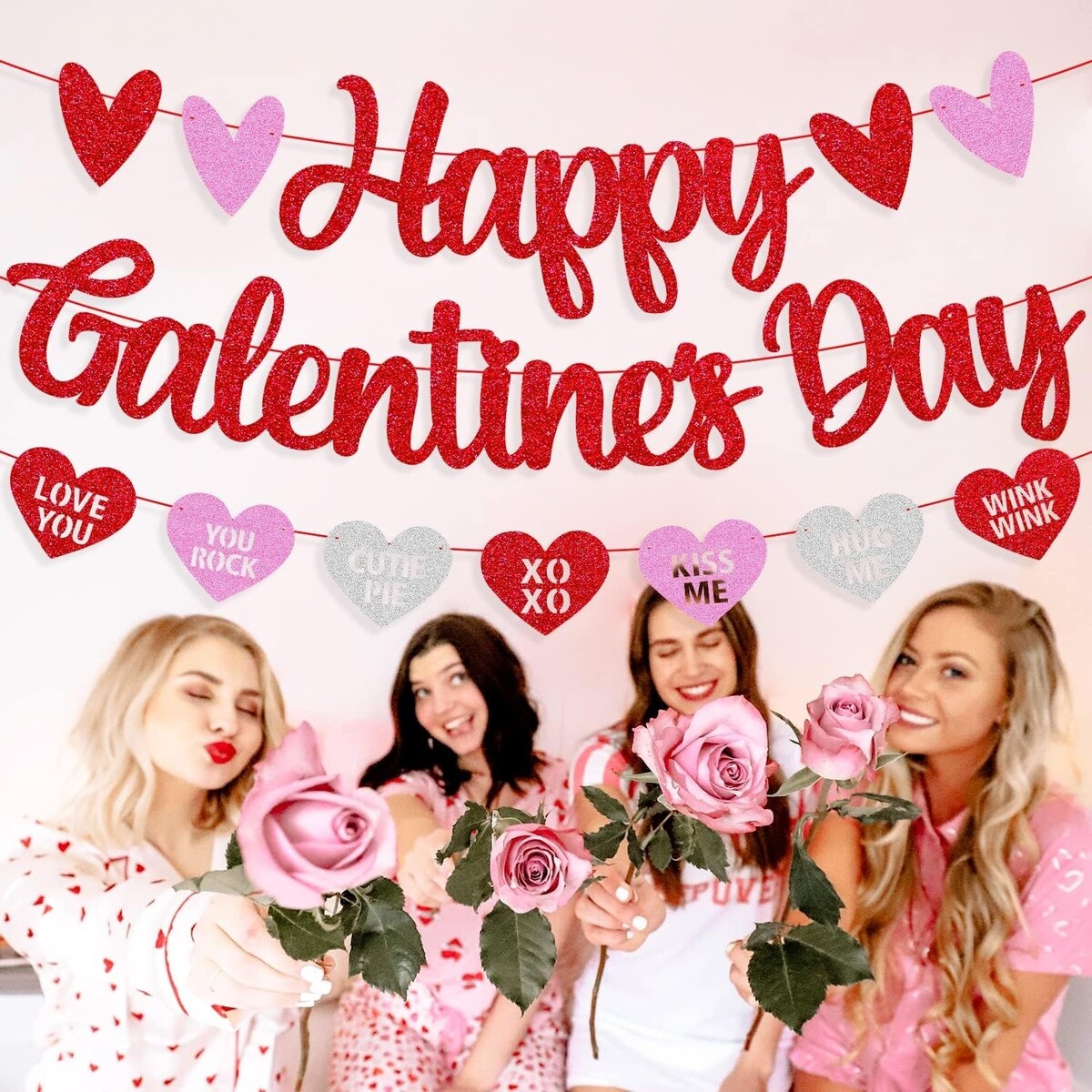 Happy Galentine's Day Banner featuring "HAPPY GALENTINE?S DAY" in charming red and pink card stock.