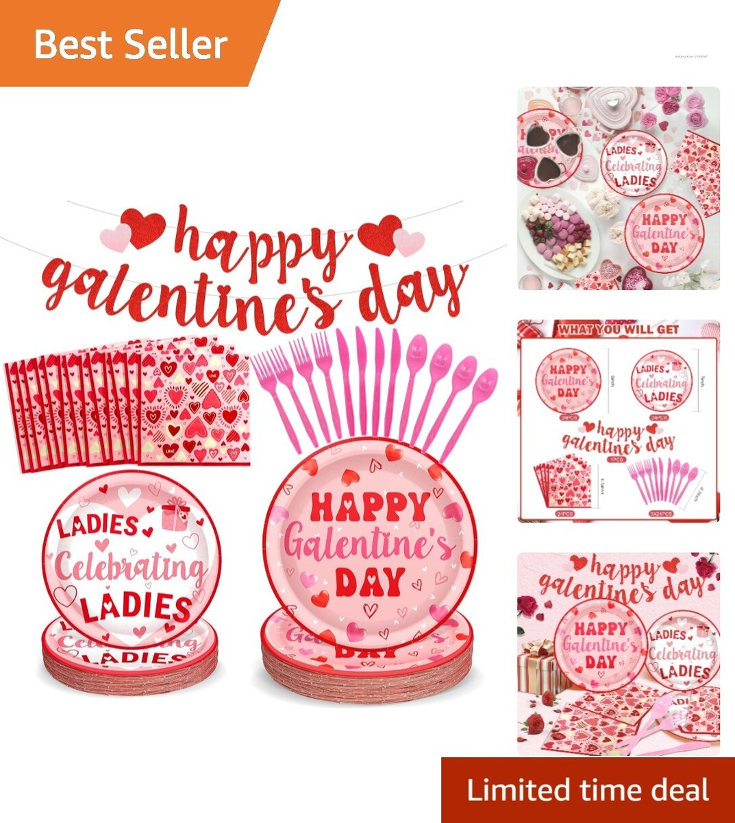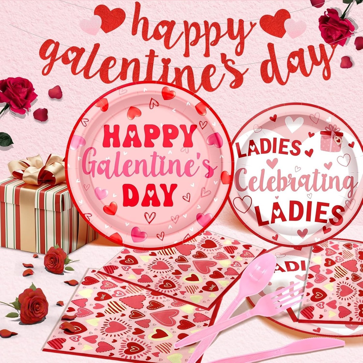 164PCS Galentines Day Decorations Set: Plates, Napkins & Happy Banner in Pink
