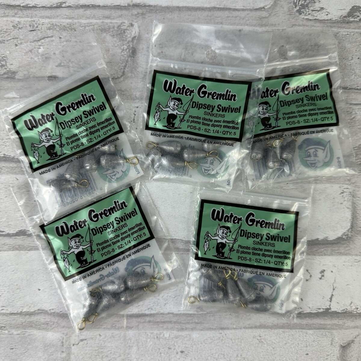Water Gremlin Dipsey Swivel Sinkers PDS-8, 3/4 Sz. 1/4 5 Bags 5 Sinkers ea Bag