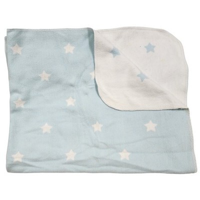 Janie and Jack Baby Blanket Blue White Star Reversible Cotton Gymboree VTG 2002
