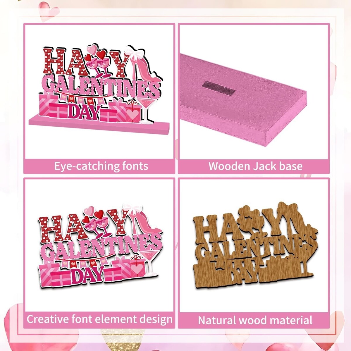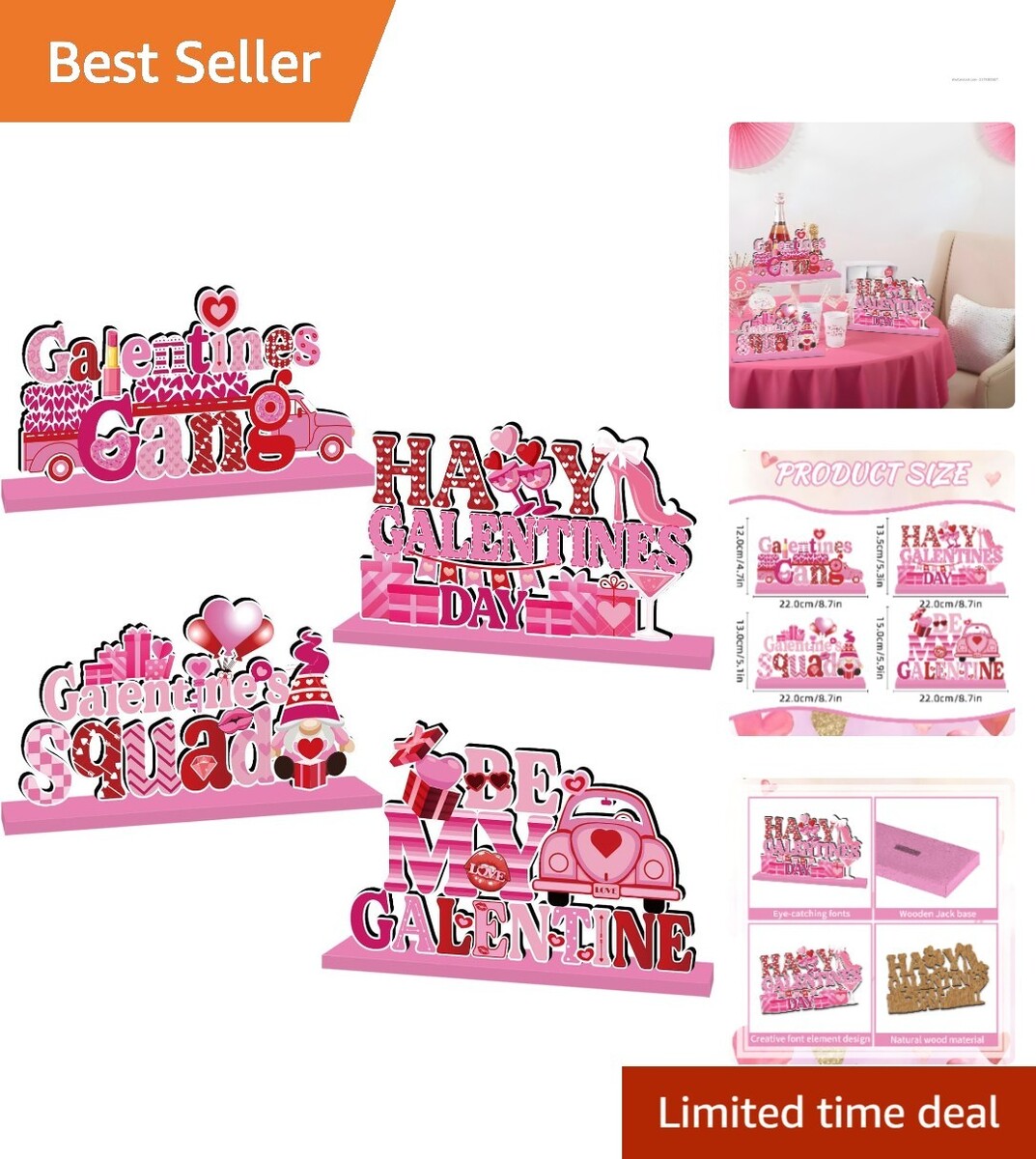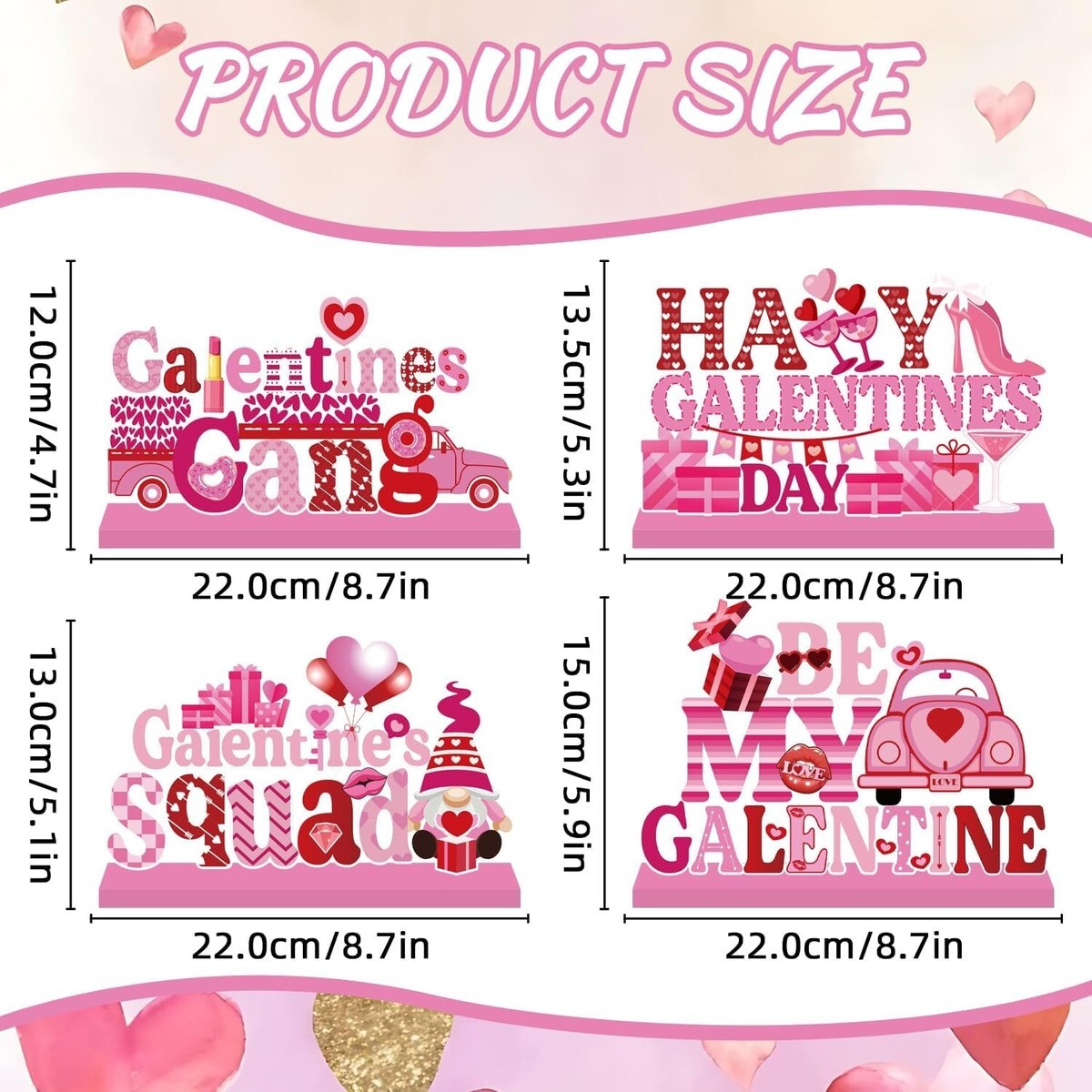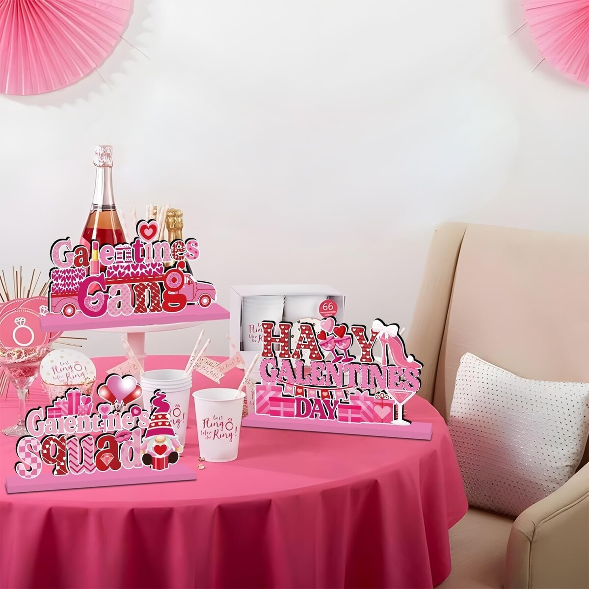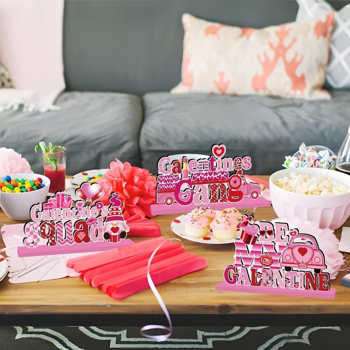 Charming Pink Galentines Day Decorations - 4 Wooden Centerpieces for Parties