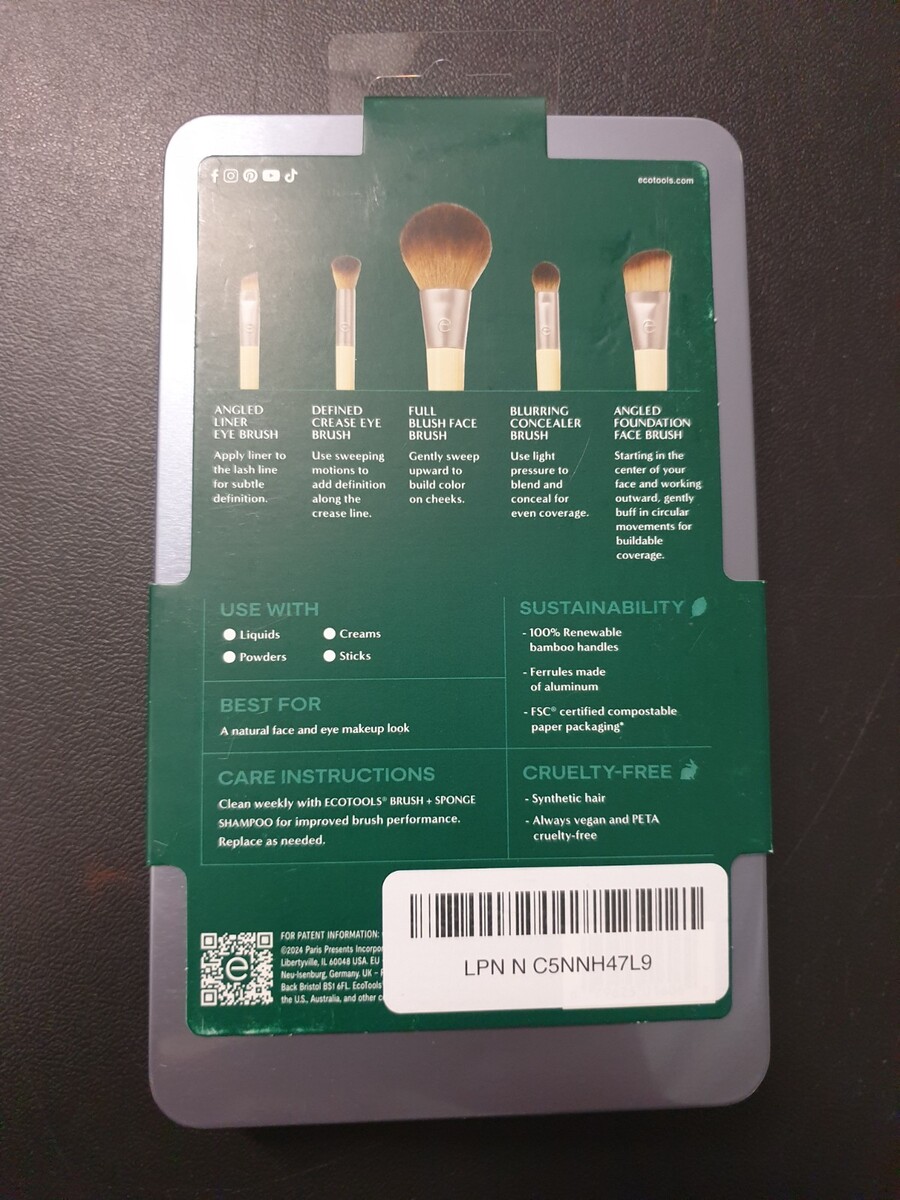 EcoTools Start The Day Beautifully Makeup Brush Set Wooden Handle (Pack of 5).