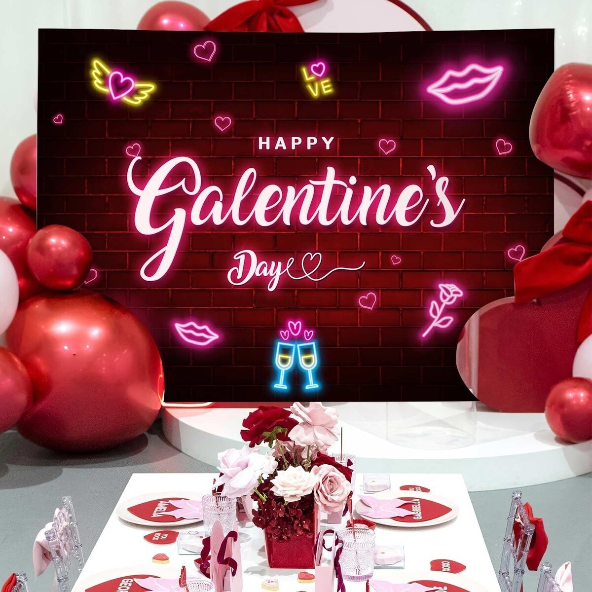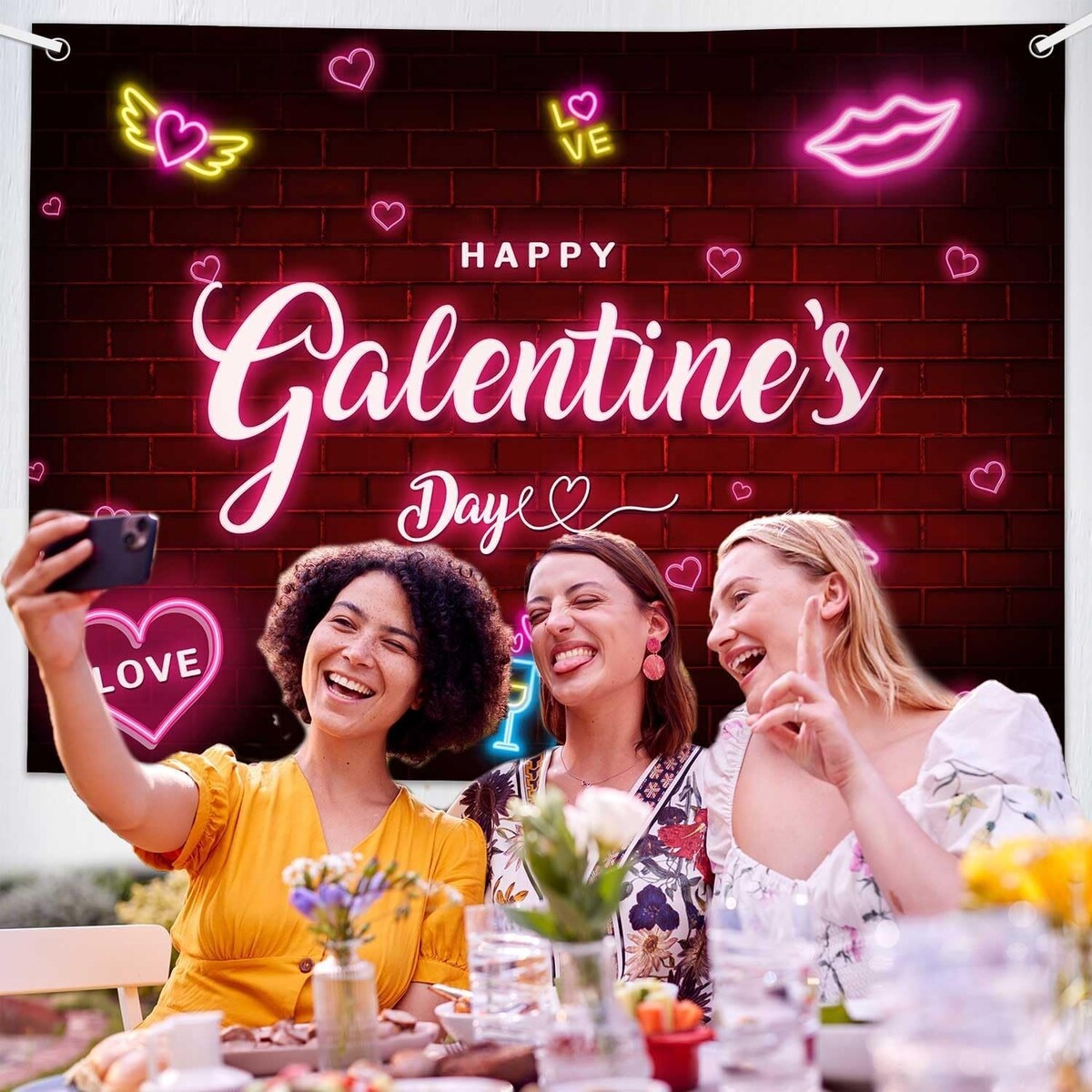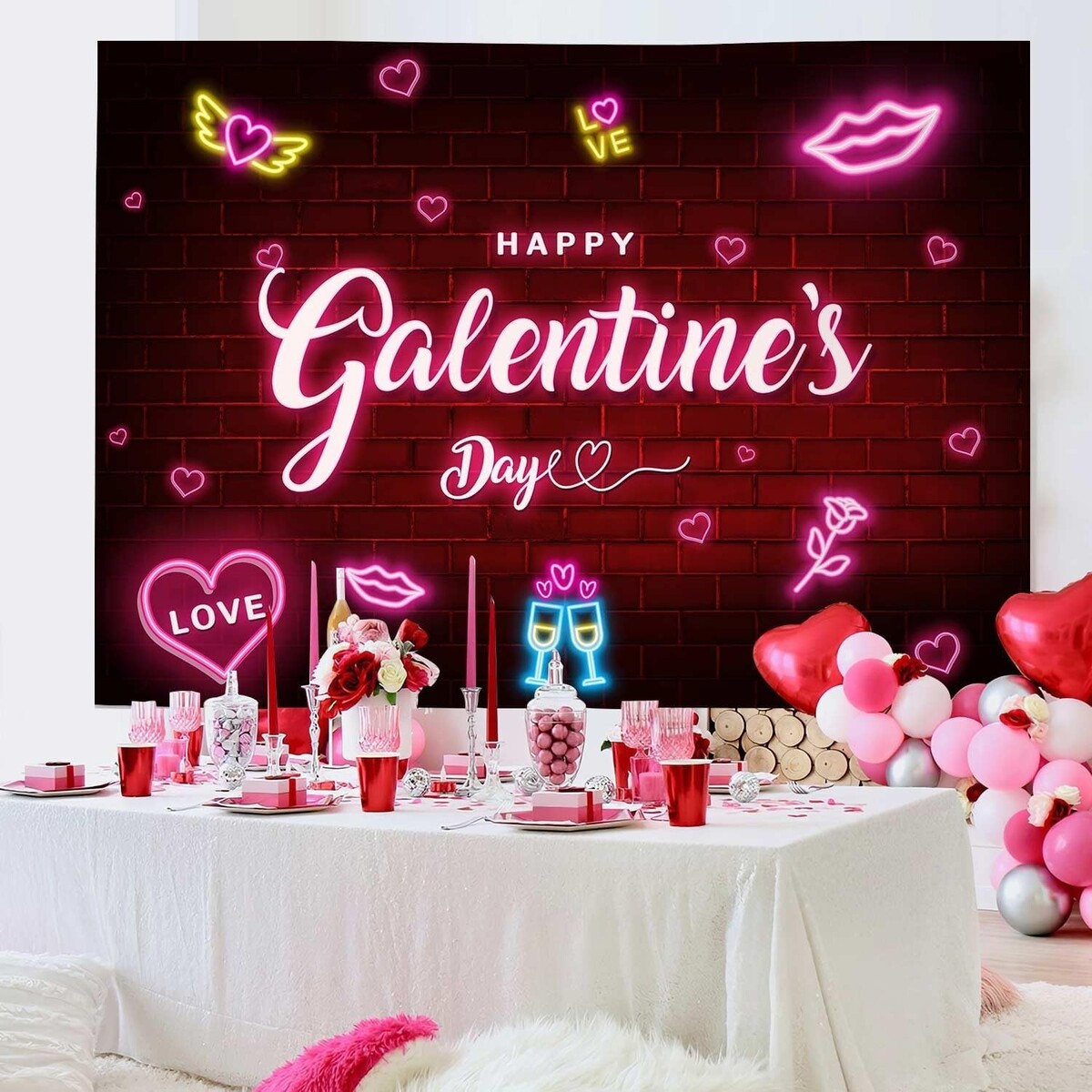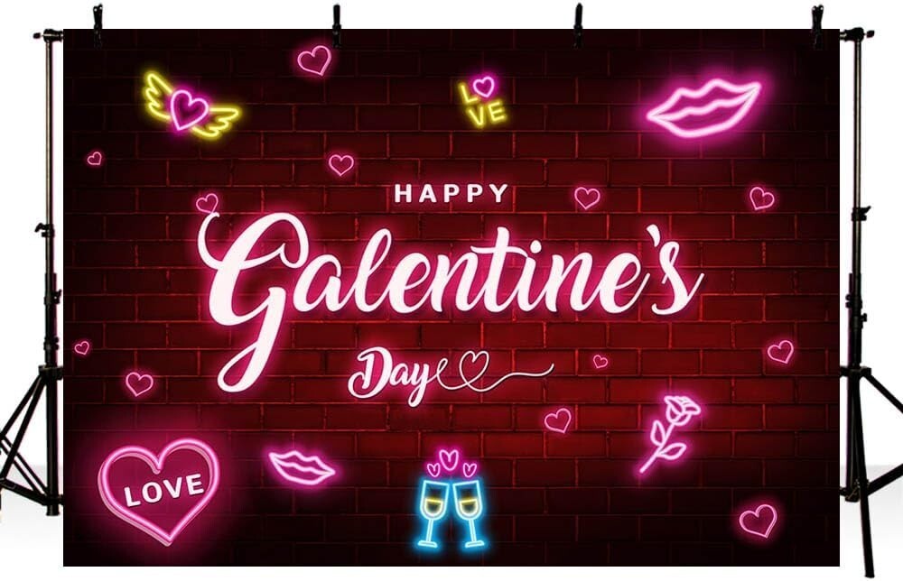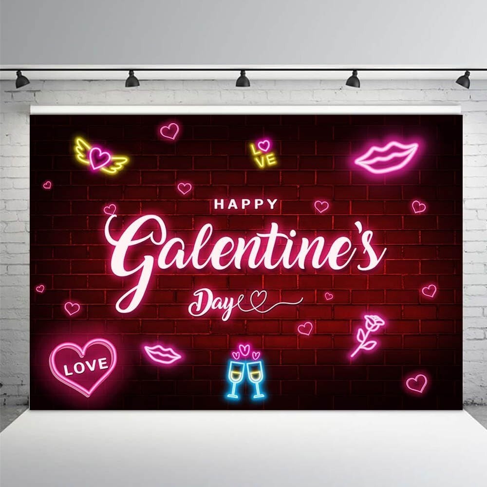 Vibrant Neon Galentine's Day Backdrop - 7x5ft Polyester Banner for Parties