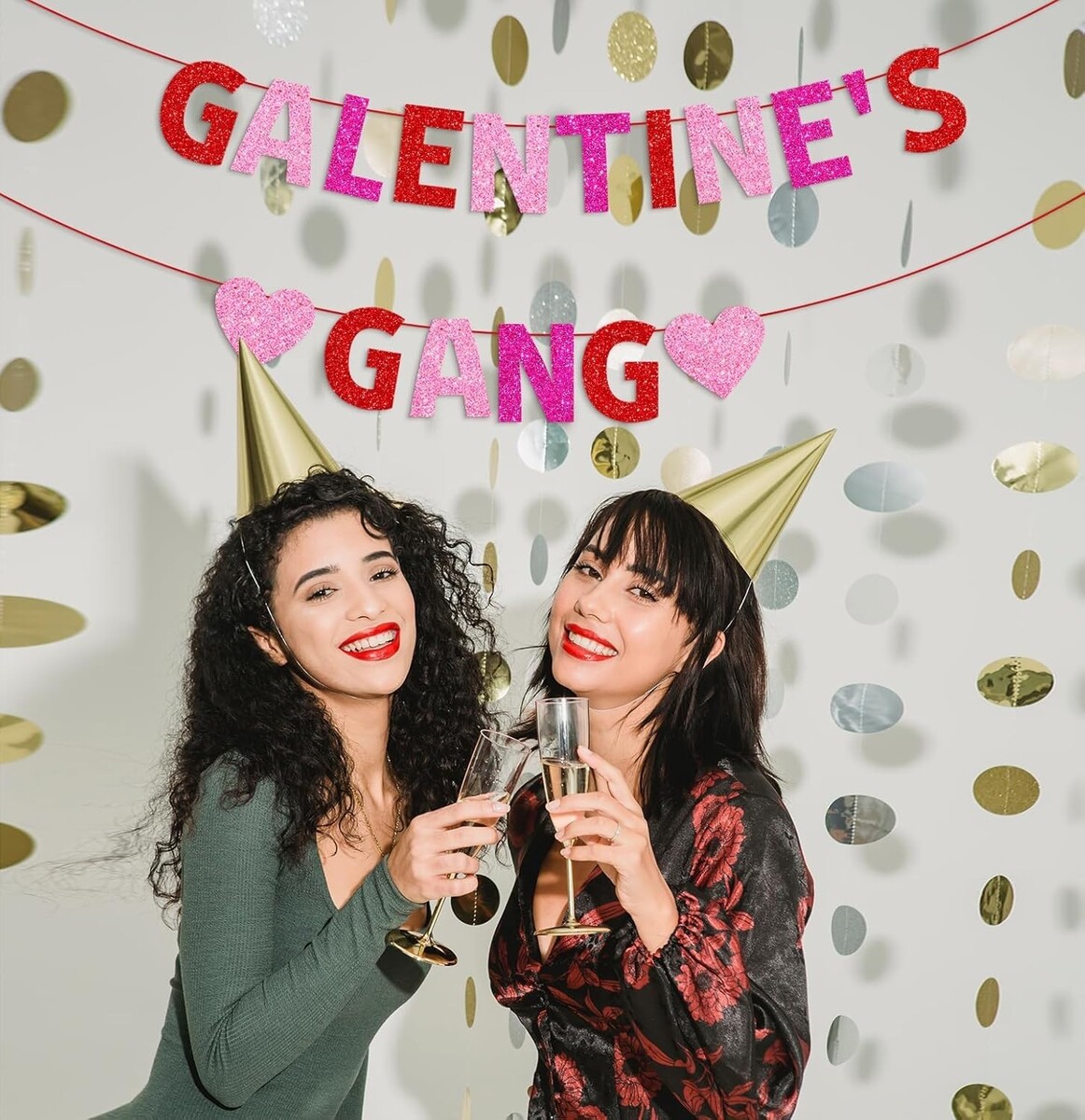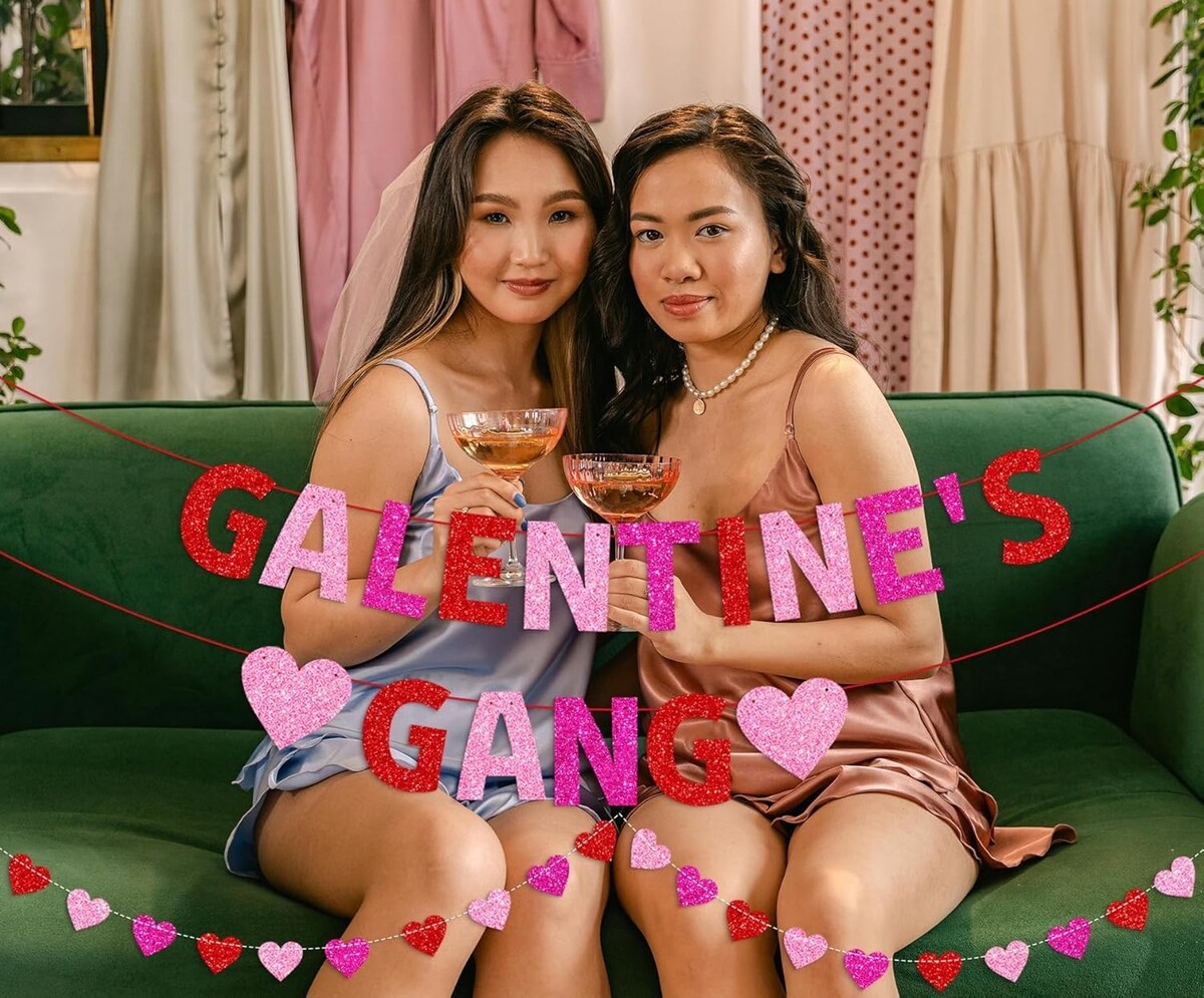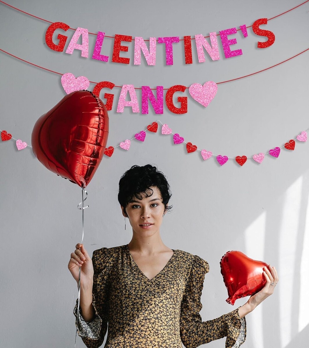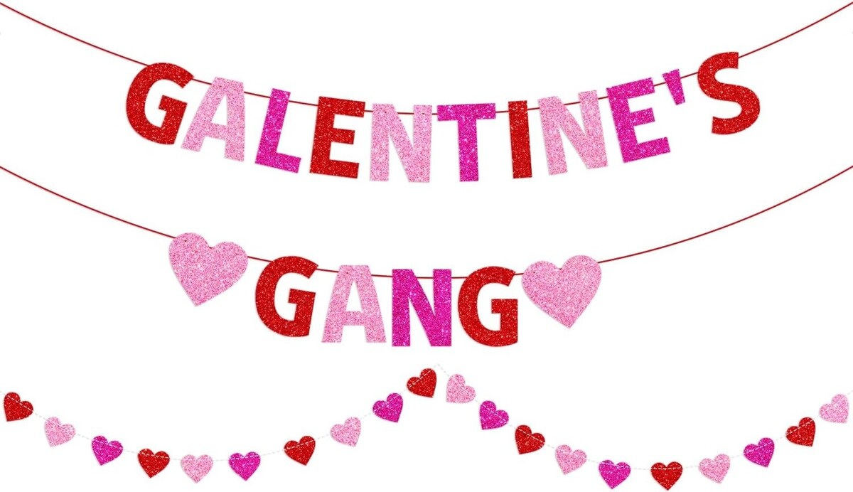 Special Design: Features glittery letters and heart garlands, perfect for adding a special touch to your Galentine?s Day celebrations.