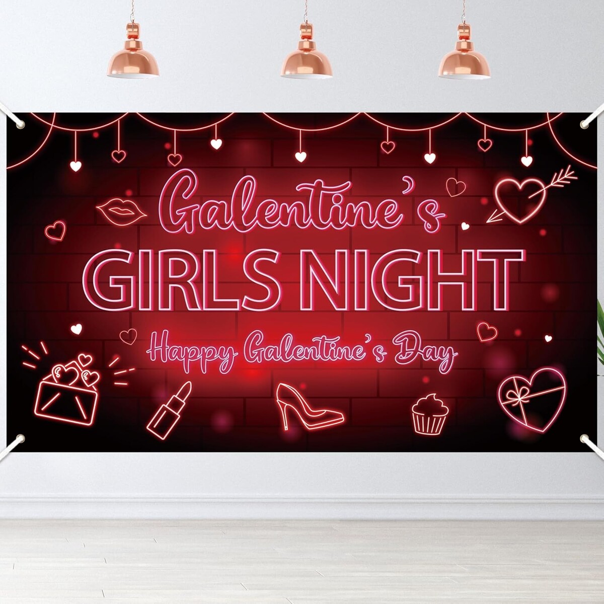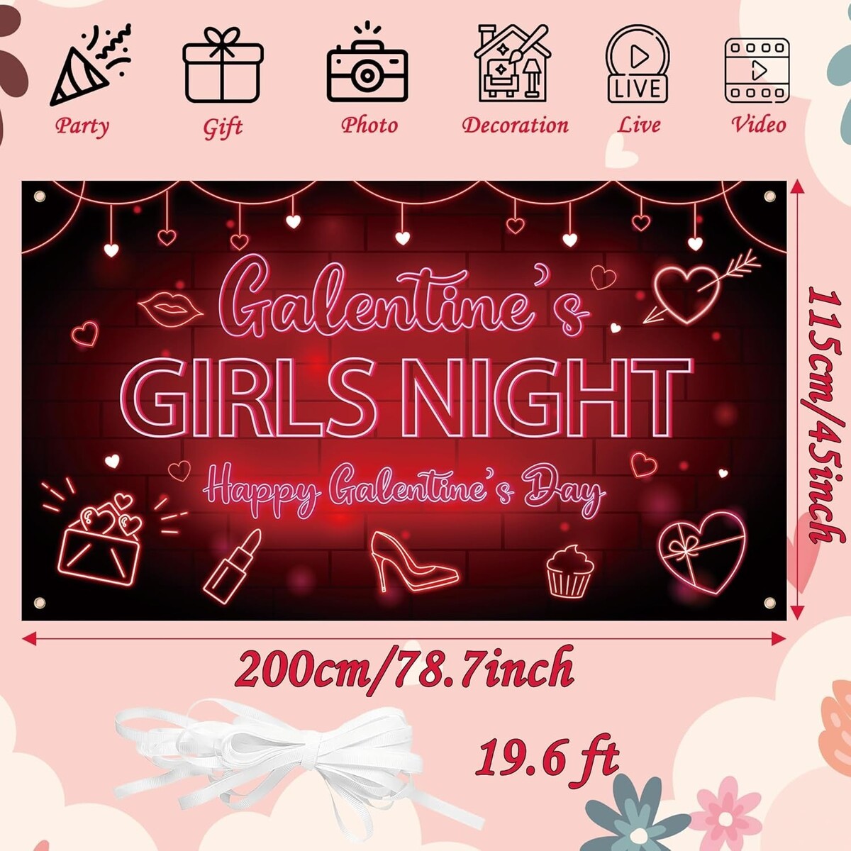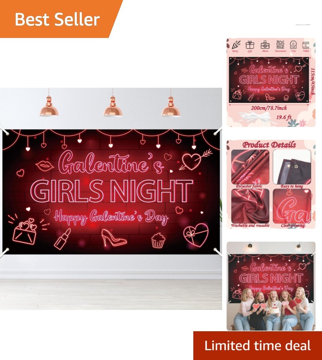 Galentine's Girls Night Neon Banner - 78" Photo Background for Fun Nights