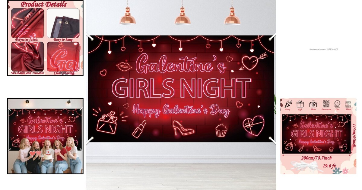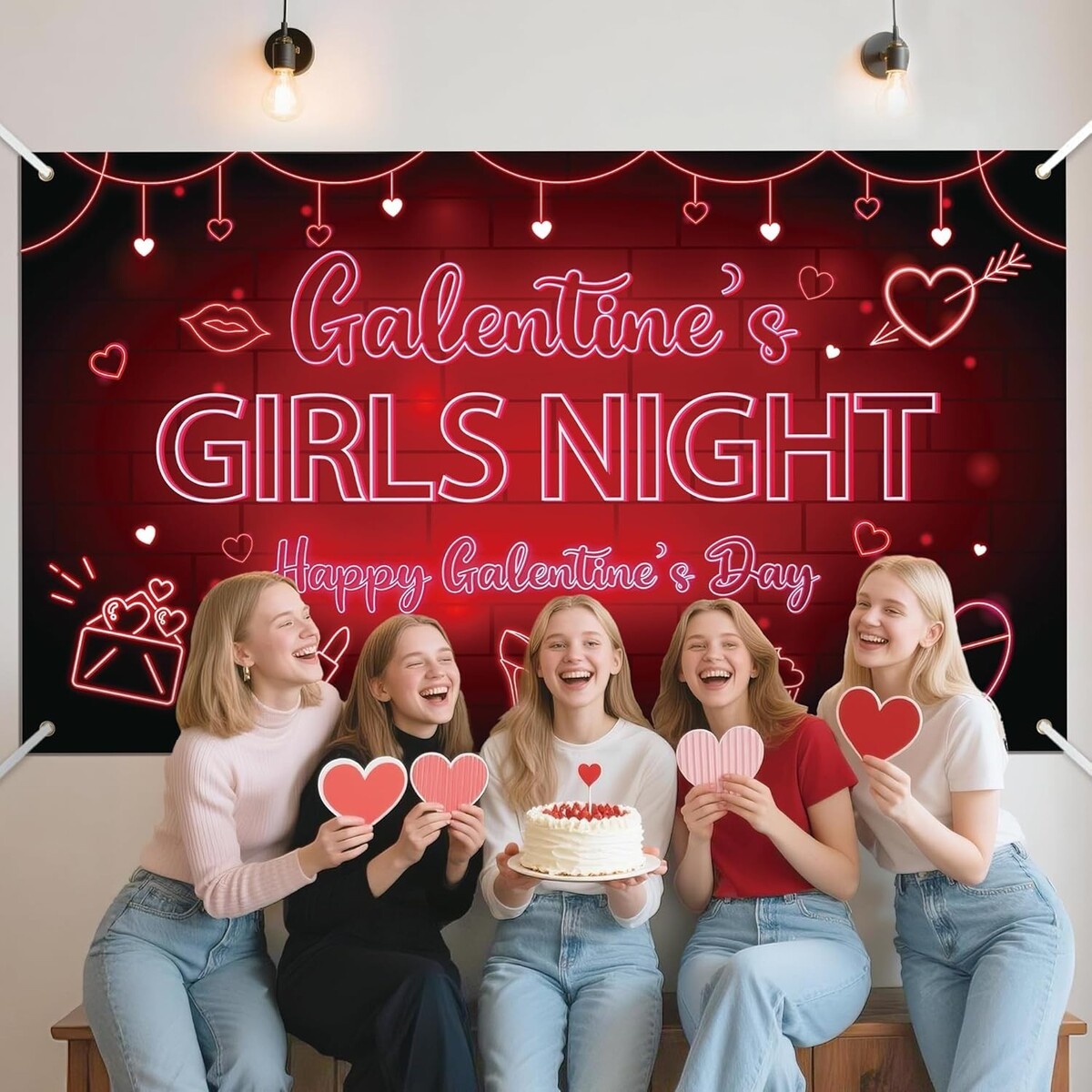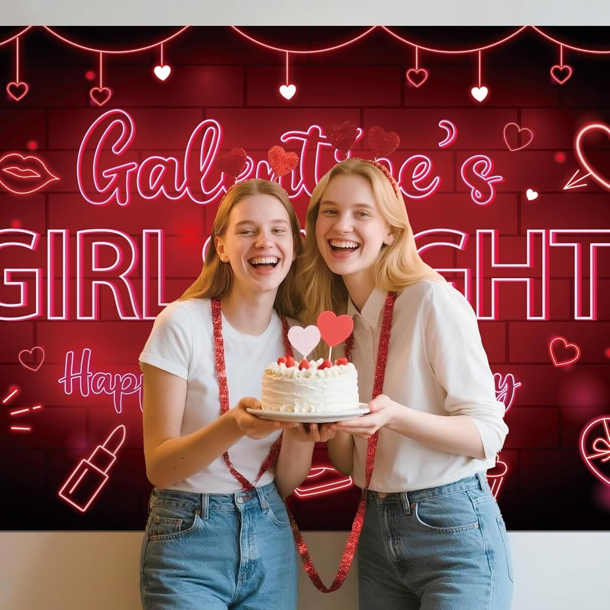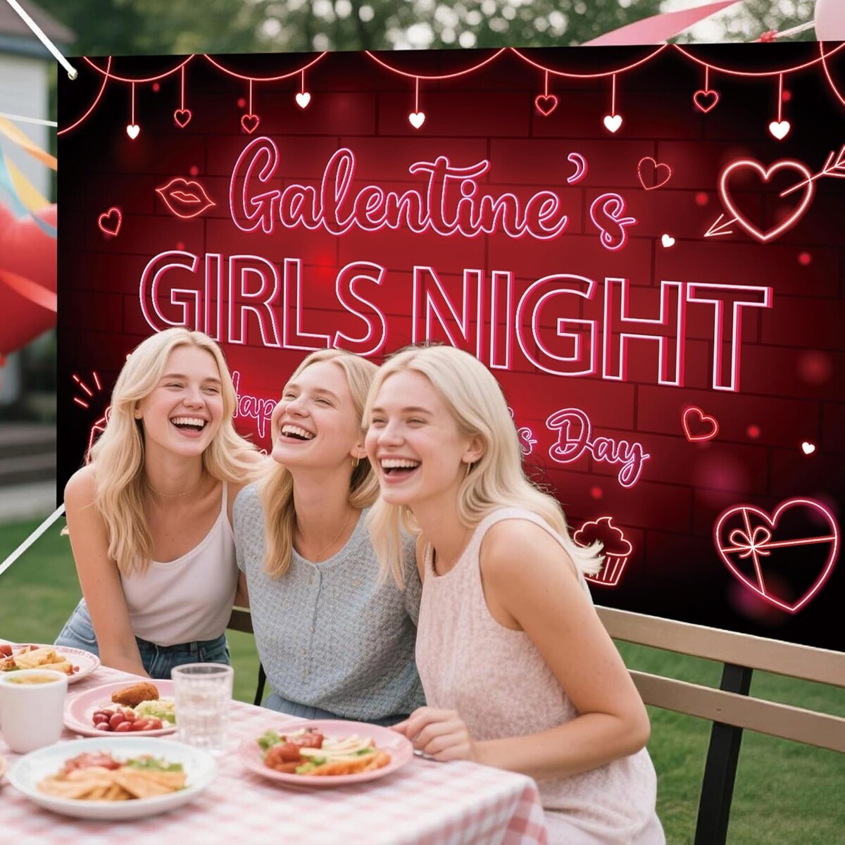 Galentine's Girls Night Neon Banner - 78" Photo Background for Fun Nights