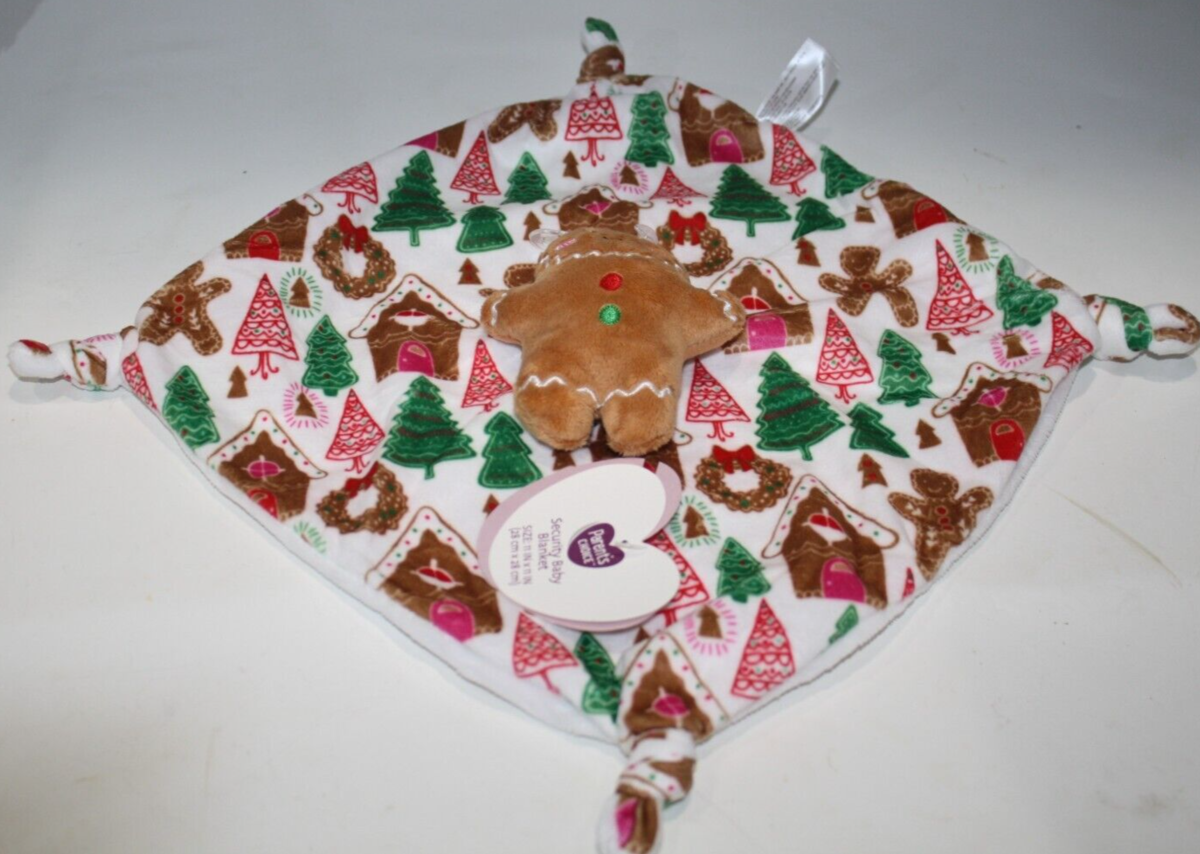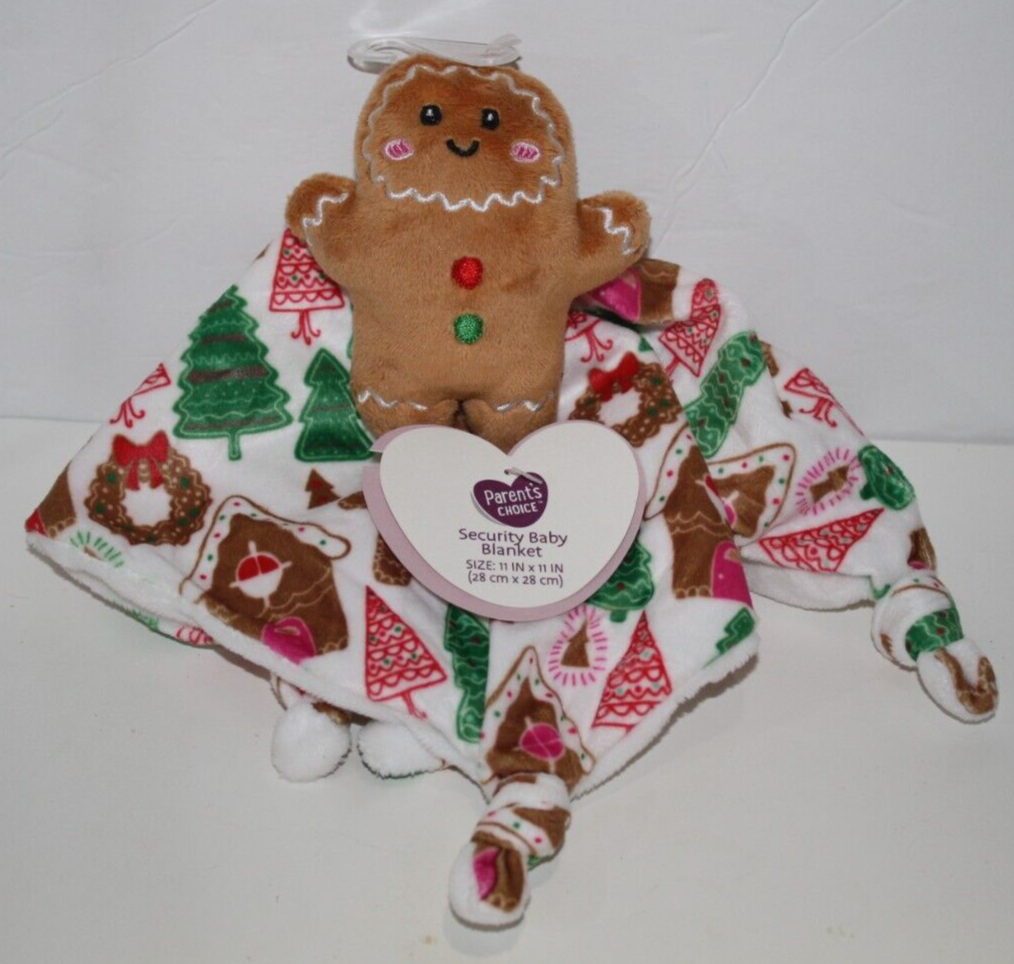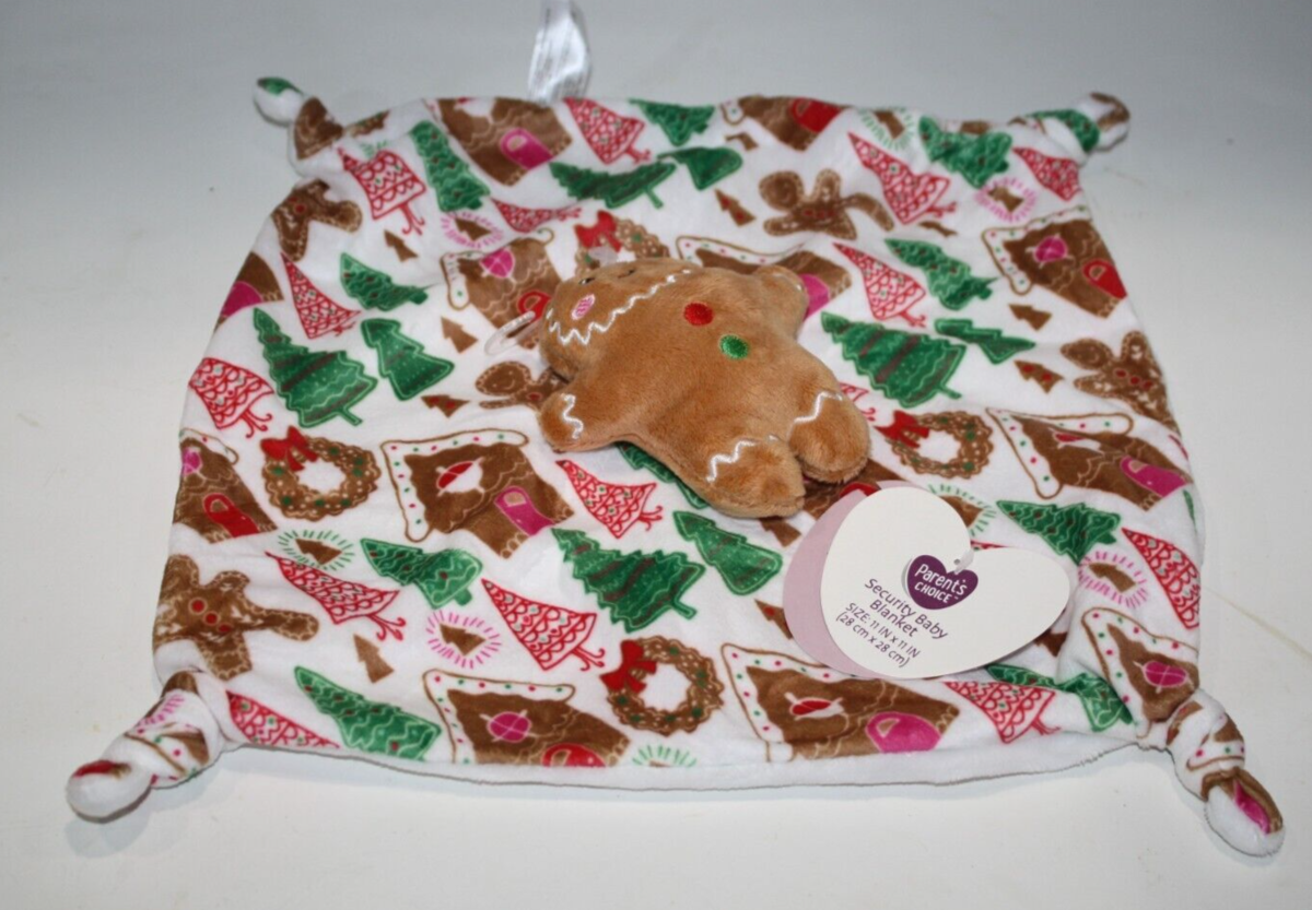 Parent's Choice, Gingerbread Man, Christmas Houses, Wreaths and Trees, Plush, Rattle, Baby Security Blanket, Knotted Corners, Paper Swing Tags, Wal-Mart, 2024, Holiday, Christmas