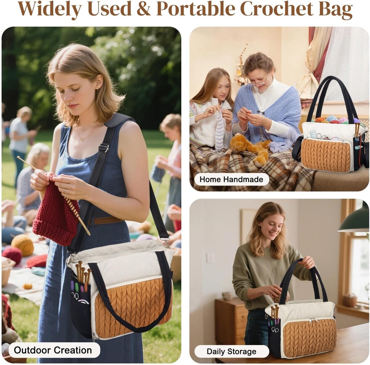 Spacious Knitting & Crochet Bag - Multi-Pocket Organizer for Yarn & Accessories