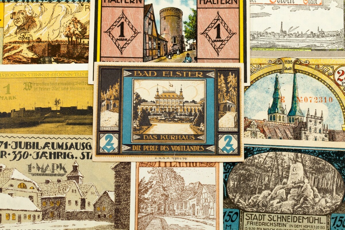 1920-1922 Alemania Notgeld (dinero de emergencia) 25pc - escenas callejeras y puntos de referencia