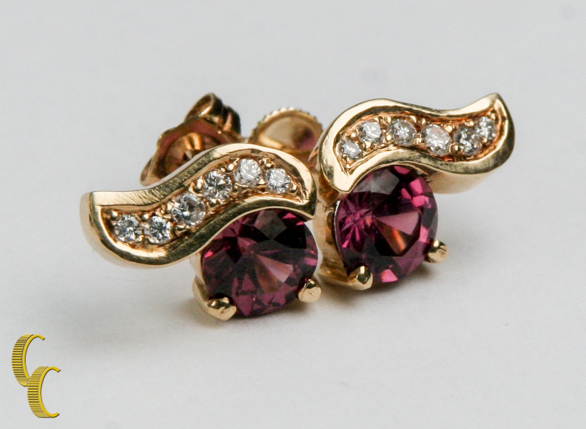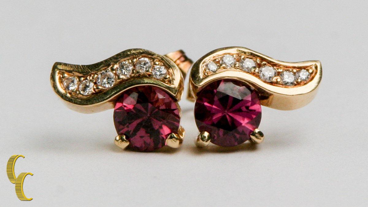 14k gelbgold rosa turmalin und diamantohrringe 14k gelb gold rosa