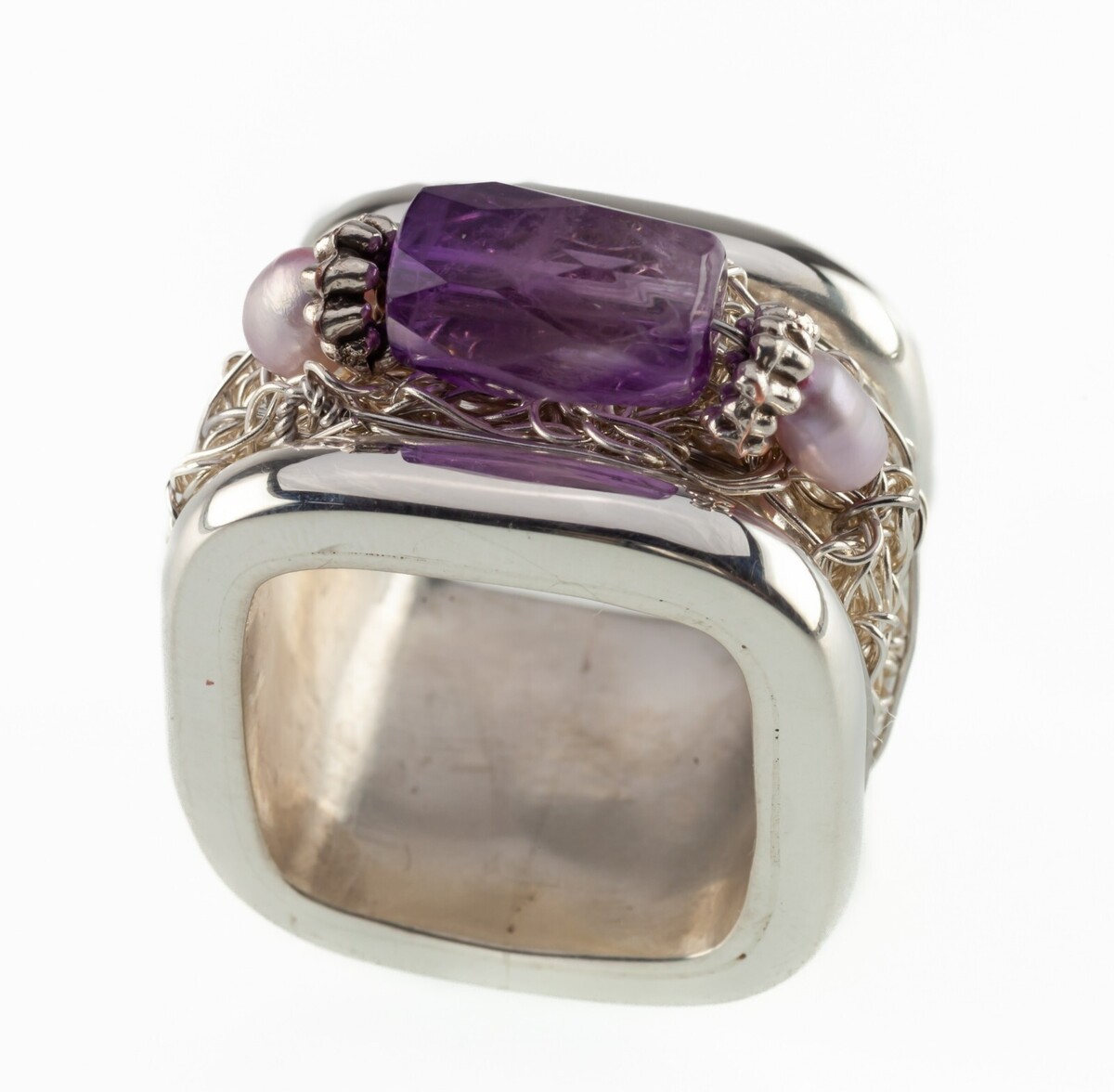 Clement Vintage Plata de Ley Alambre Amatista Cuadrado Anillo Tamaño 10