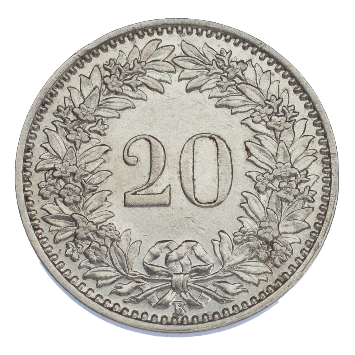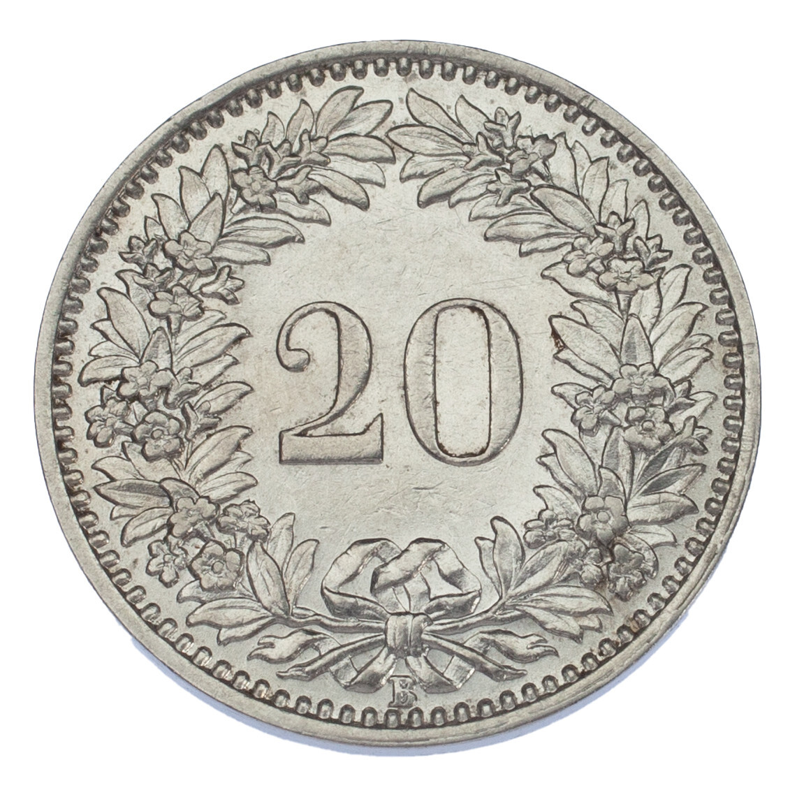 Die Rückseite zeigt den Wert (20) innerhalb des Kranzes