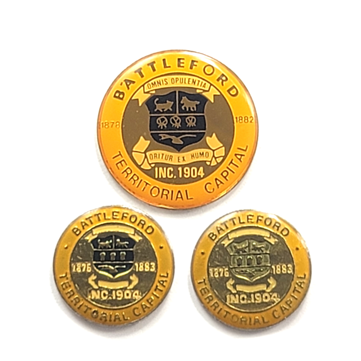 Lot of 3 Battleford Territorial Capital Gold Tone Enamel Pins