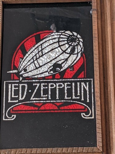 A vendre est un miroir de carnaval Led Zeppelin des annees 1980, cadre en bois, 11,5 "x 8,5", Man Cave.