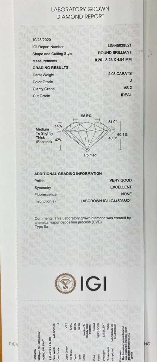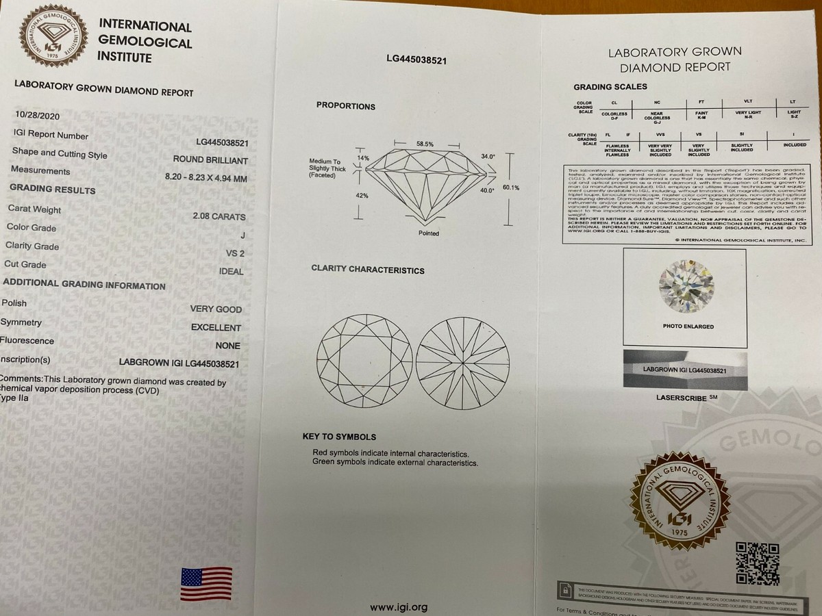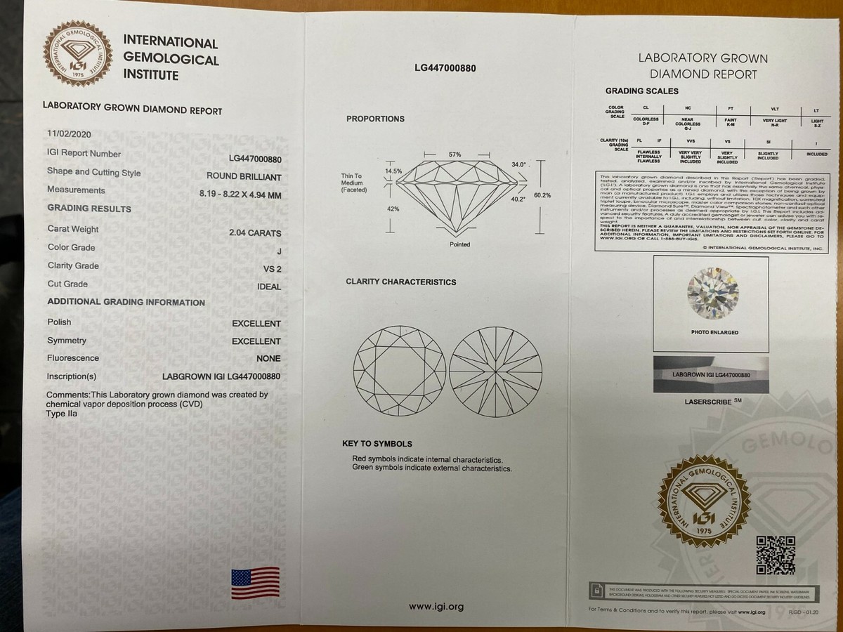 · 2,04 ct taglio rotondo CVD Diamond J Color Vs2 Clarity