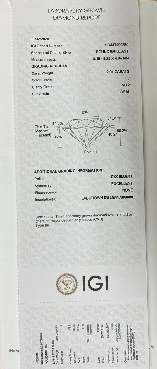 § Iscrizione (s): Labgrown IGI LG447000880