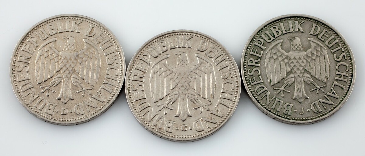Lot de 3 pieces de 1 Mark Allemagne 1950 en etat XF KM #110