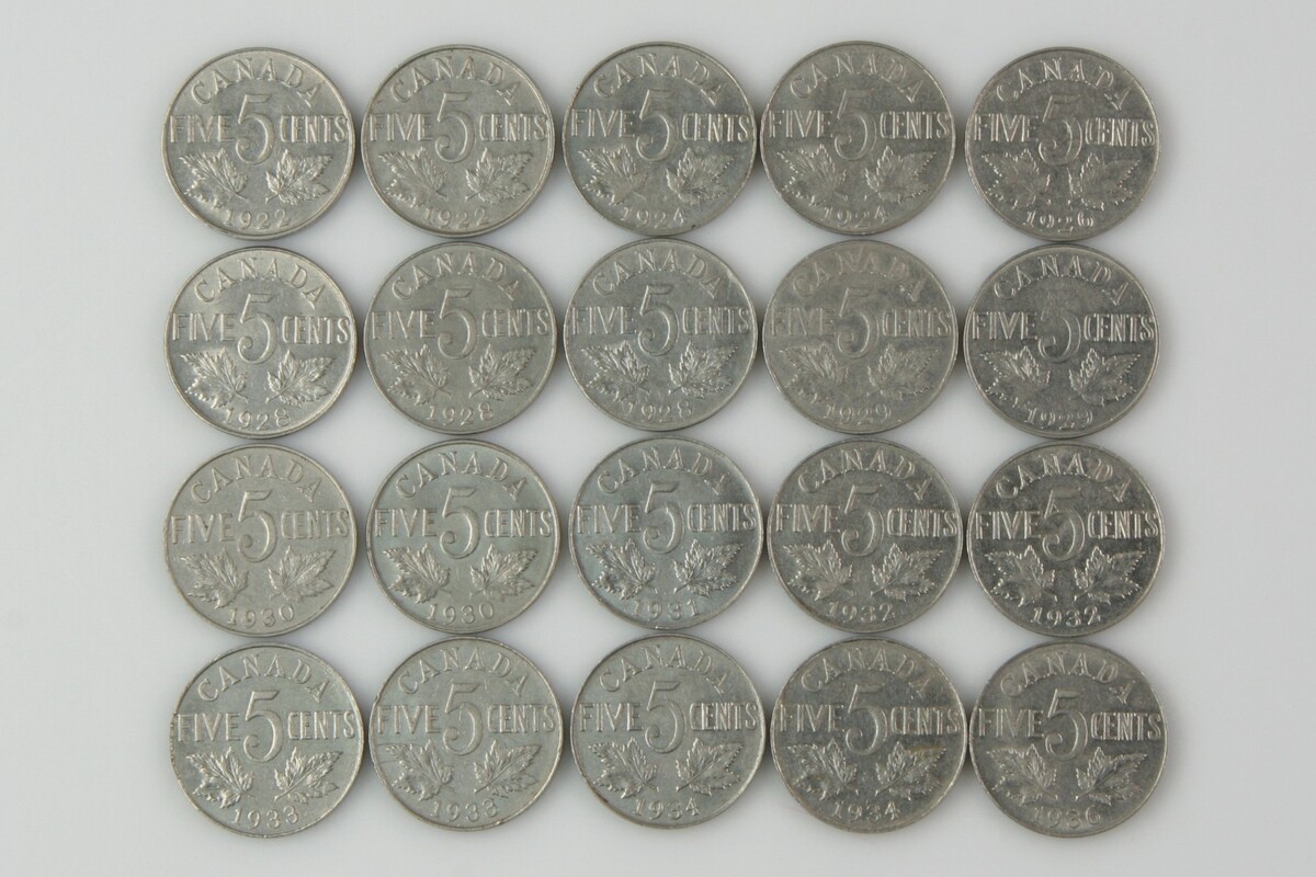 1922-1936 Lotto da 5 centesimi canadesi (0,05 C$; 20 monete)