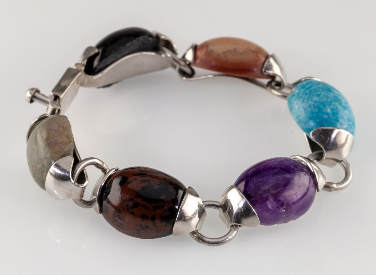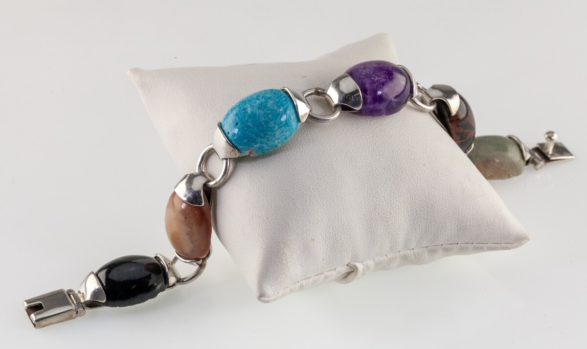 Splendido bracciale messicano Taxco in argento con pietre miste da 16 mm