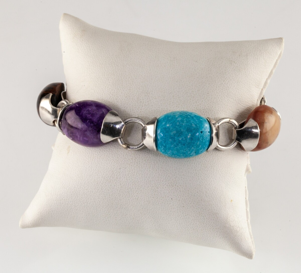 Grazioso Bracciale In Argento Messicano Di Taxco Con Pietre Miste 16mm
