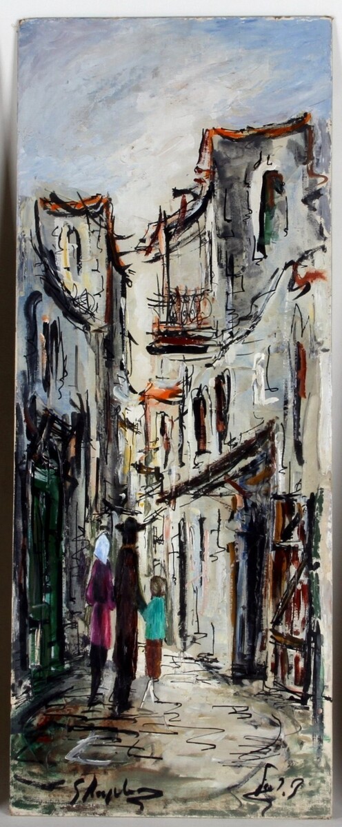 "Safah II" est un magnifique tableau de S. Raphael cree en 1965. Il s'agit d'une peinture a l'huile originale sur carton et mesure 30 pouces de hauteur et 12 pouces de largeur. L'?uvre d'art represente un paysage urbain epoustouflant avec des gens, ce qui en fait un excellent ajout a toute collection d'art. La piece est signee par l'artiste, ajoutant a sa valeur et a son authenticite. Il est livre sans cadre, permettant a l'acheteur de choisir le cadre parfait qui correspond a son style personnel. Ne manquez pas l'opportunite de posseder cette ?uvre d'art unique et intemporelle. Que vous cherchiez a acheter des objets ou que vous souhaitiez vendre de l'or et de l'argent contre de l'argent, vendre des pieces de monnaie ou une variete d'autres objets de collection, nous sommes la pour vous a