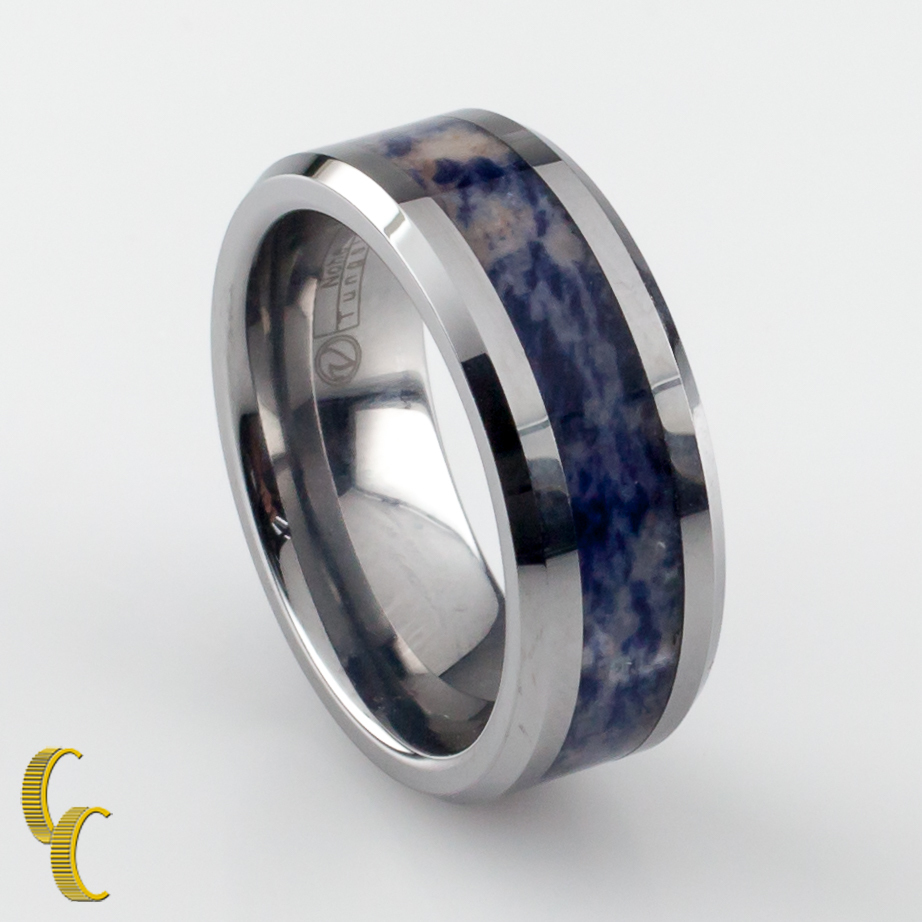 Men's Tungsten Ring w/ Blue Marble Colored Center Band Size 8.5