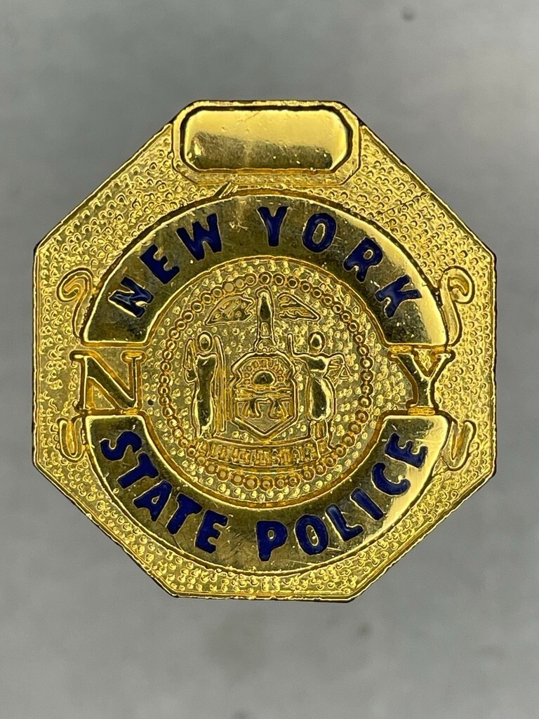 New York State Police Trooper lapel pin police This pin meets's regulations. This pin is obsolete and is strictly for collecting. This pin has no authority.