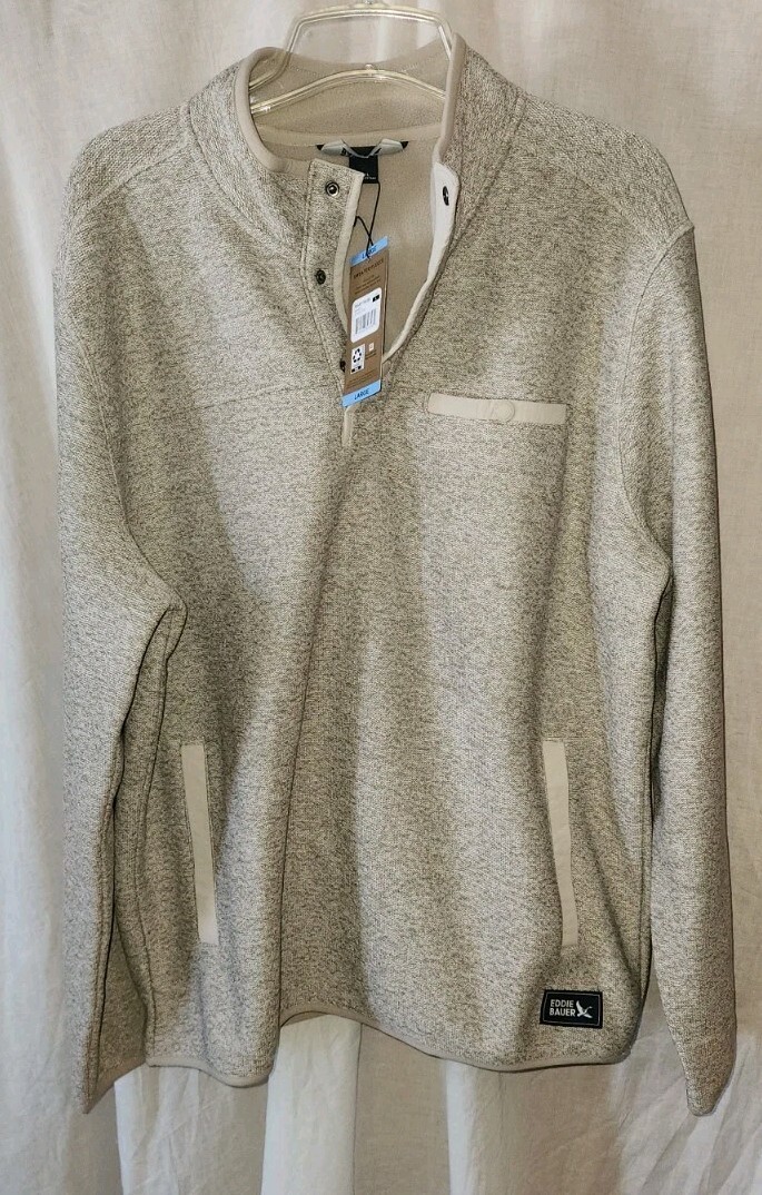NWT Mens Eddie Bauer Sweater Fleece Classic Fit Pull Over H Ivory Large