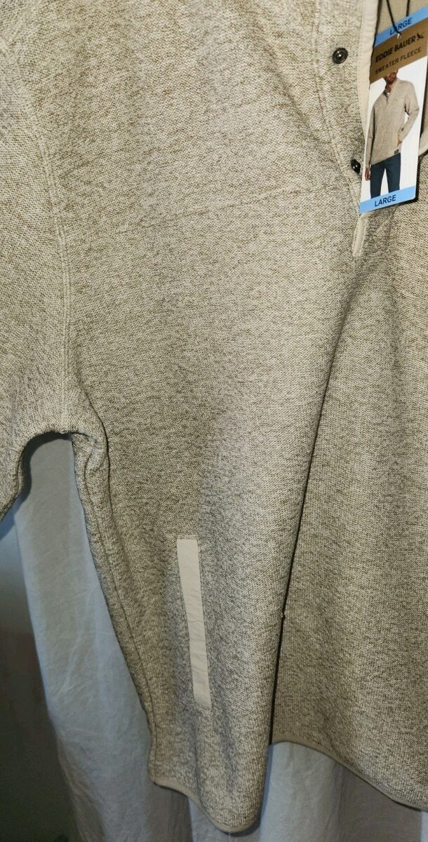 New. Eddie Bauer. Large size. Hand pocket storage. Pull over fleece. Ivory Color.