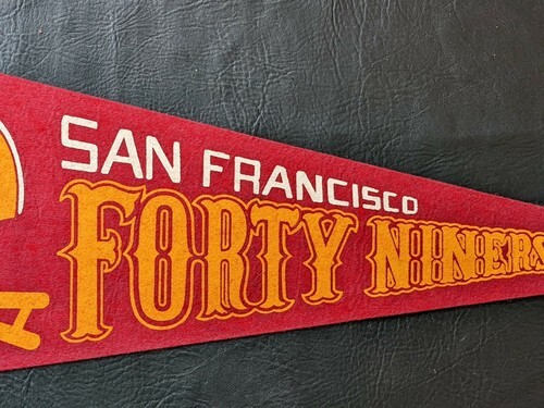 A vendre est un fanion en feutre NFL NFC Vintage San Francisco 49ers 2 Bar d'occasion qui mesure 30 x 12 pouces.